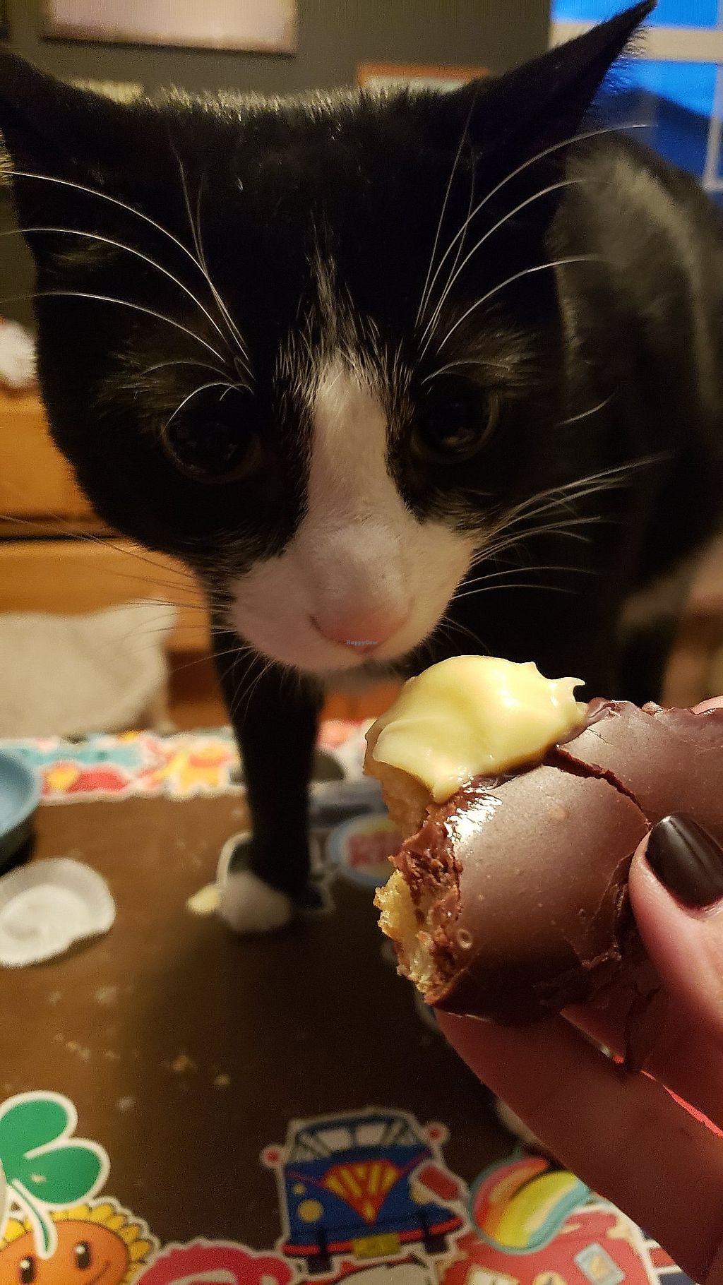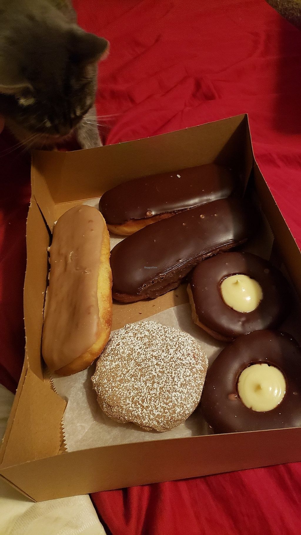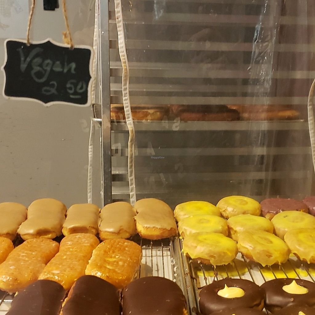The vegan donuts are pretty good, especially the Boston Cream and lemon. Service is spotty as some staff are visibly annoyed at having to serve vegan donuts. I visit the place regularly, but lately the guys seem like serving vegan friendly product is too much to ask for.