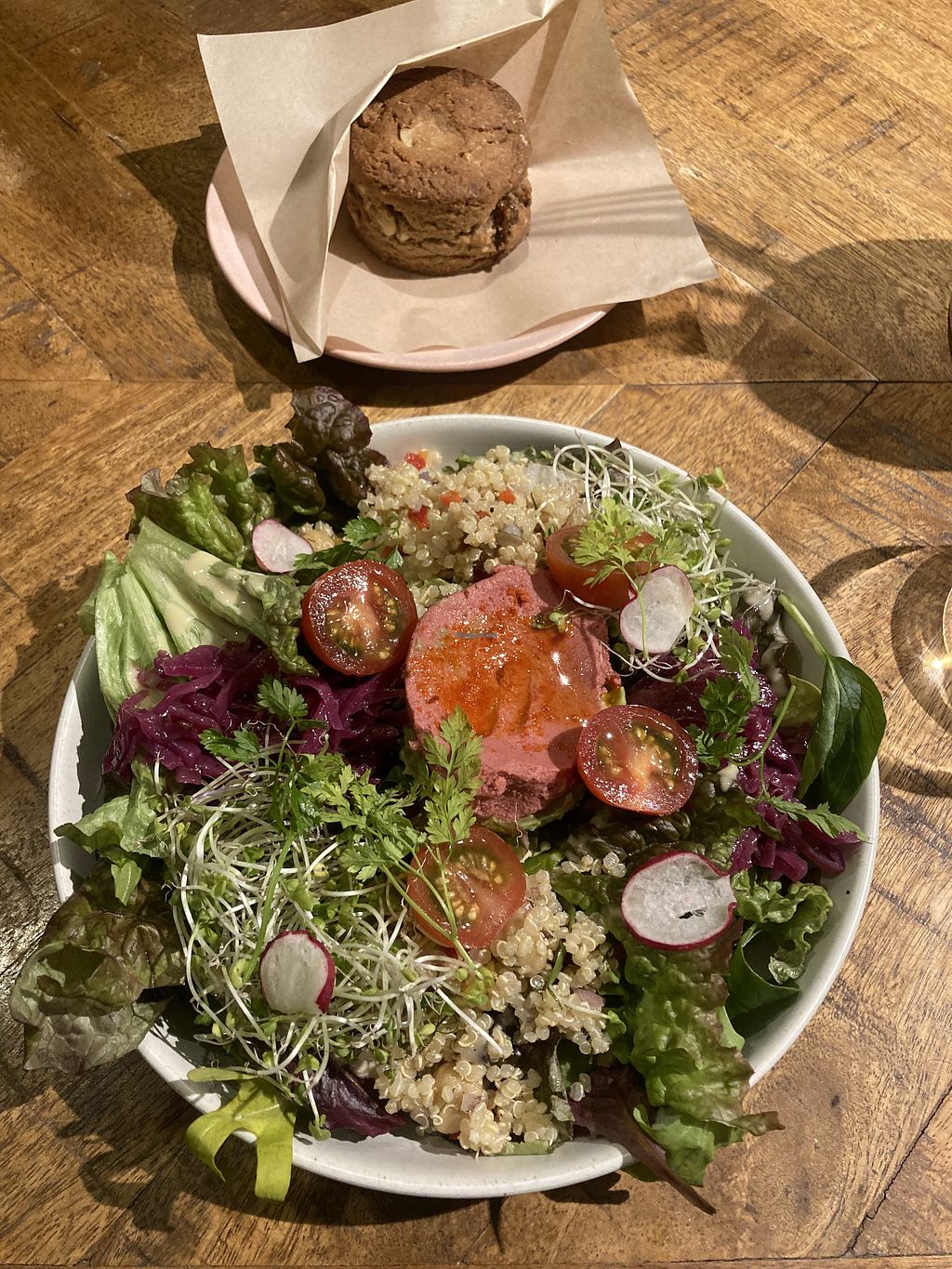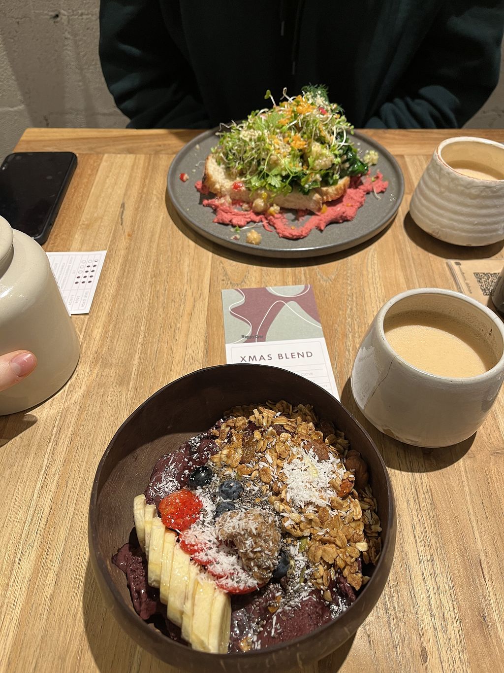 Açai bowl and vegan hummus bowl with a vegan cookie 🤤