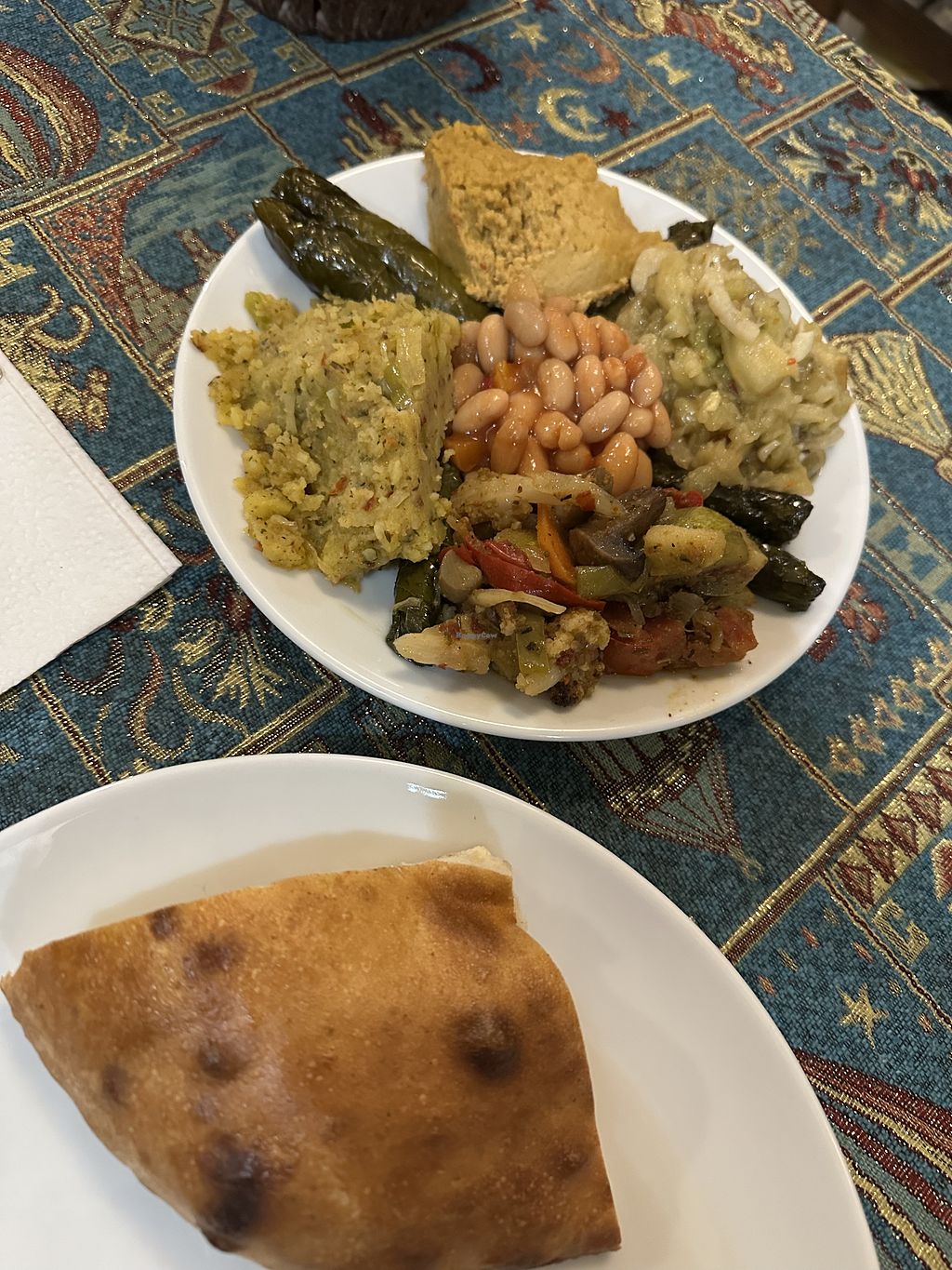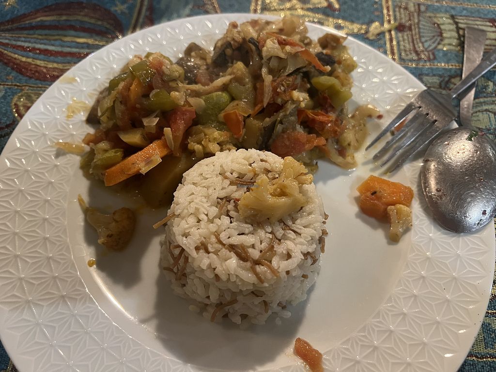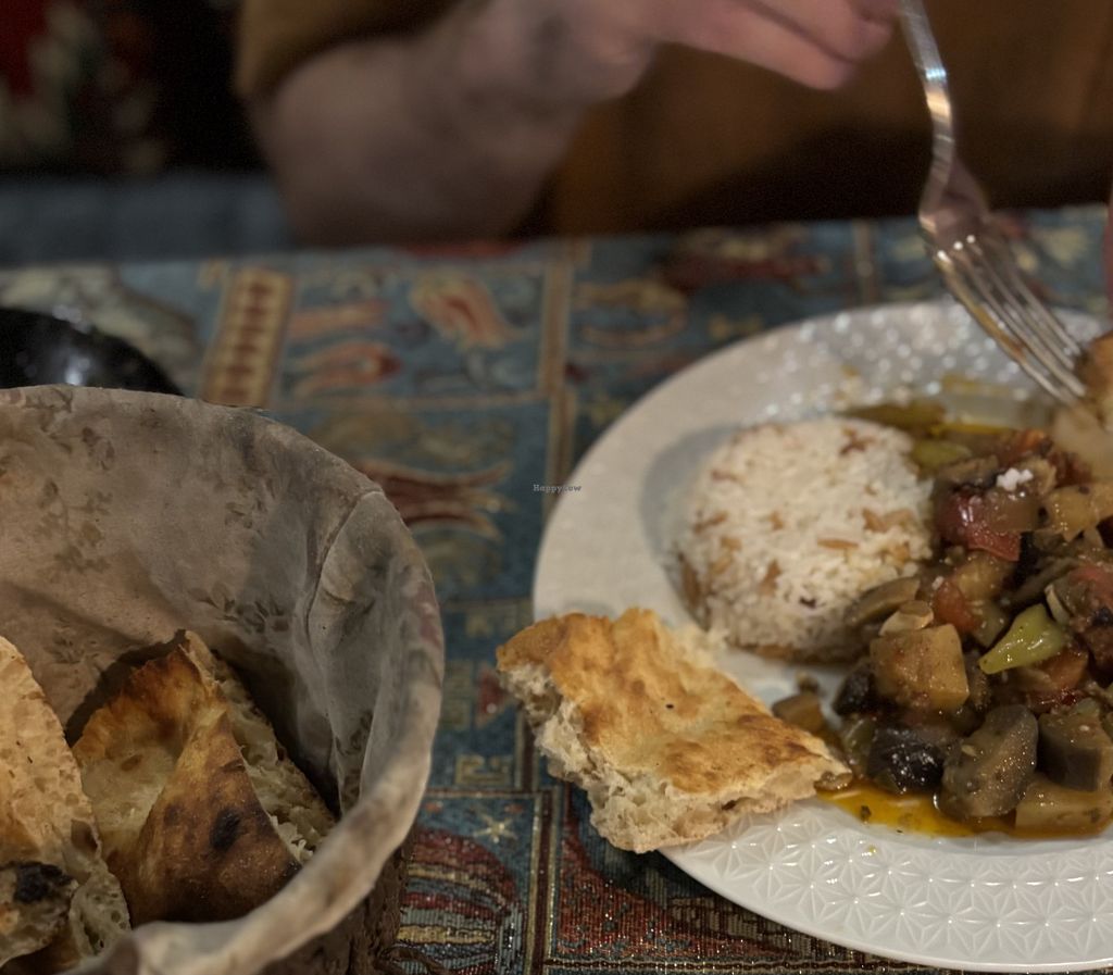 We ordered and asked for the vegan mezze plate and clay pot and then the bread came out and it was shiny on top so we asked if it’s vegan and they said yes but only a little bit of egg on top. They ended up making other bread for us and the food was okay