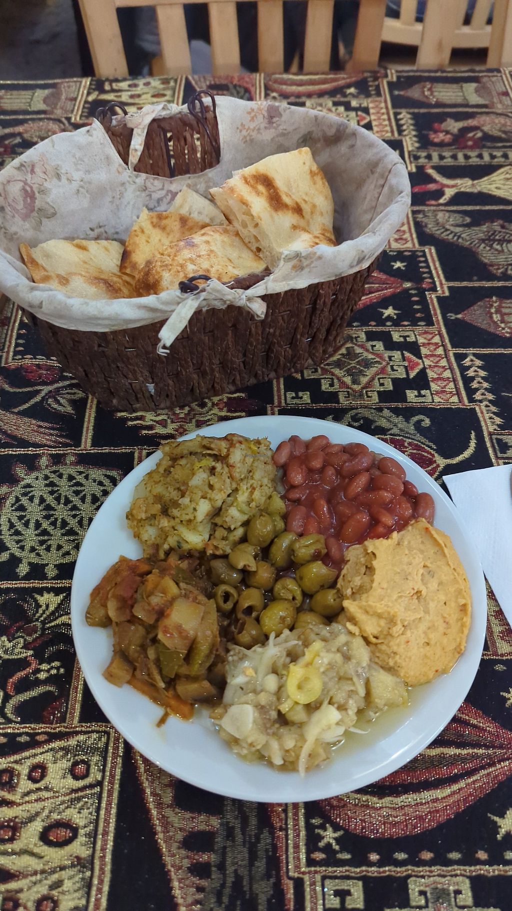 Loved the mezze plate here! I just asked for it vegan rather than vegetarian and it was no problem. Not much else except the veg claypot. The mezze is plate is enough for one person’s meal.