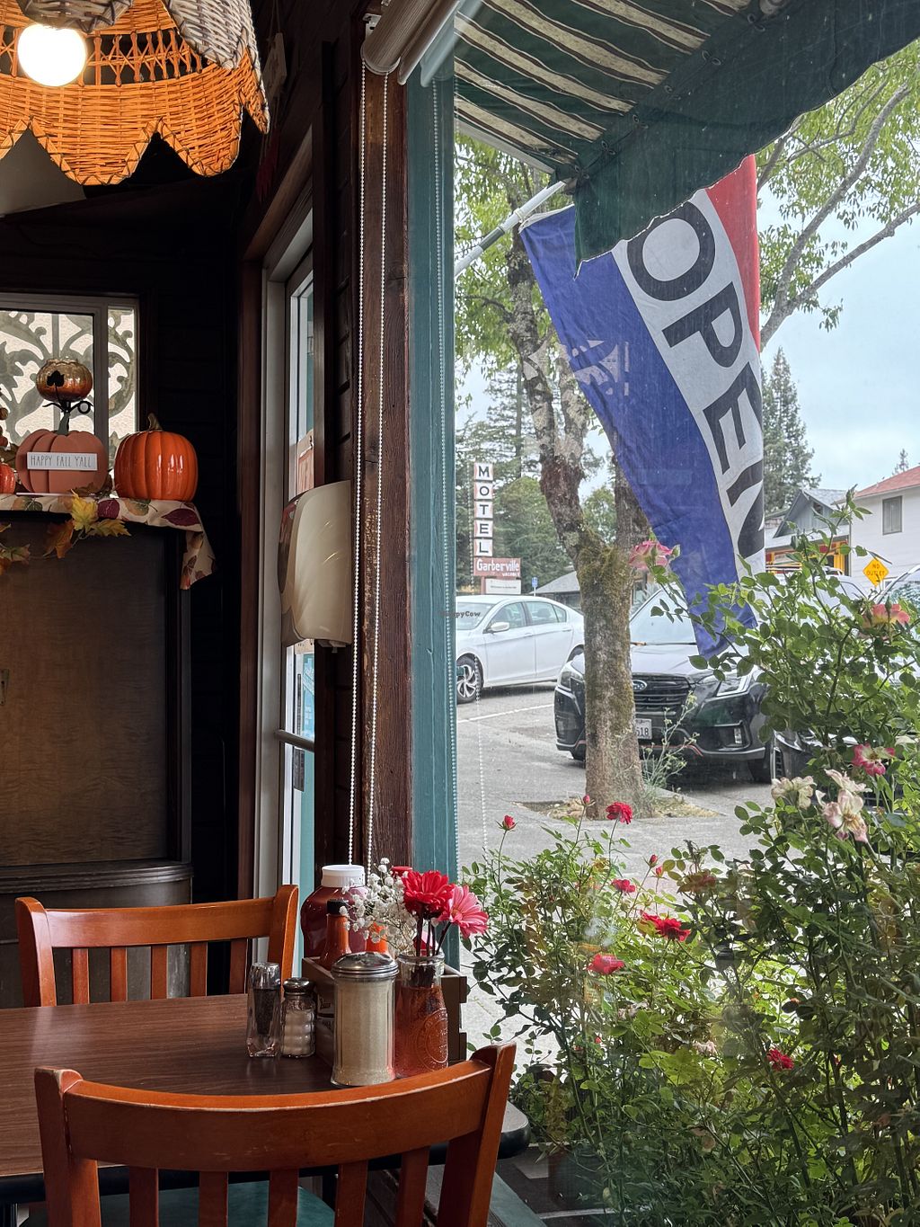 Fresh OJ and carrot/orange juice. French vanilla soy milk in coffee
