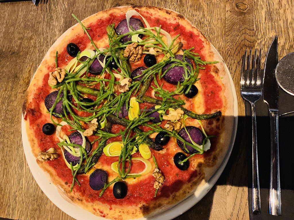 They have a "secret" vegan menu which they will give you right away if you mention that you're vegan in the reservation. The vegan cheese on the pizza is.. not that good, but a good attempt. The starter was a simple bread with tomatoes. For dessert they have a vegan cocktail or ice cream. If you're looking for a simple meal, sure! But honestly wouldn't go here again for pizza because of the quality of the vegan cheese.