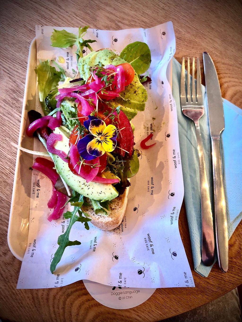 Abbiamo preso due tortine (molto buone) e l’avocado toast. C’è poca scelta per vegani ma è un posto principalmente per i cani 😀