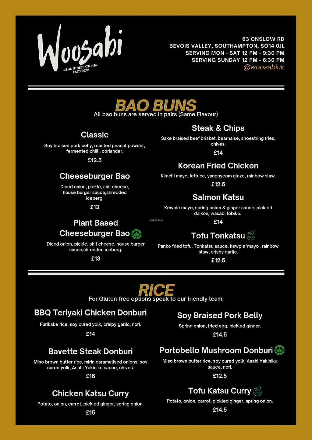 Serves meat, vegan options available. Restaurant offering vegan/veganizable dishes like popcorn cauliflower (fried plant-based bites), truffled veggie burger, plant-based mushroom wellington, plant-based cheeseburger bao (steamed bun), tofu tonkatsu bao (panko-crumbed tofu with sauce), portobello mushroom donburi (rice bowl), tofu katsu curry, and more. Open Mon-Sat 12:00-21:30, Sun 12:00-18:30.