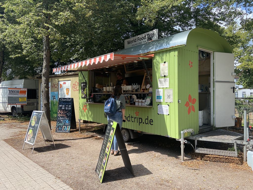 Sehr leckeres Essen, man kann es vor Ort essen, es gibt ein paar Tische neben dem Truck oder auch mitnehmen. Die Wraps sind auch recht groß, hab meinen gerade so geschafft 😅
