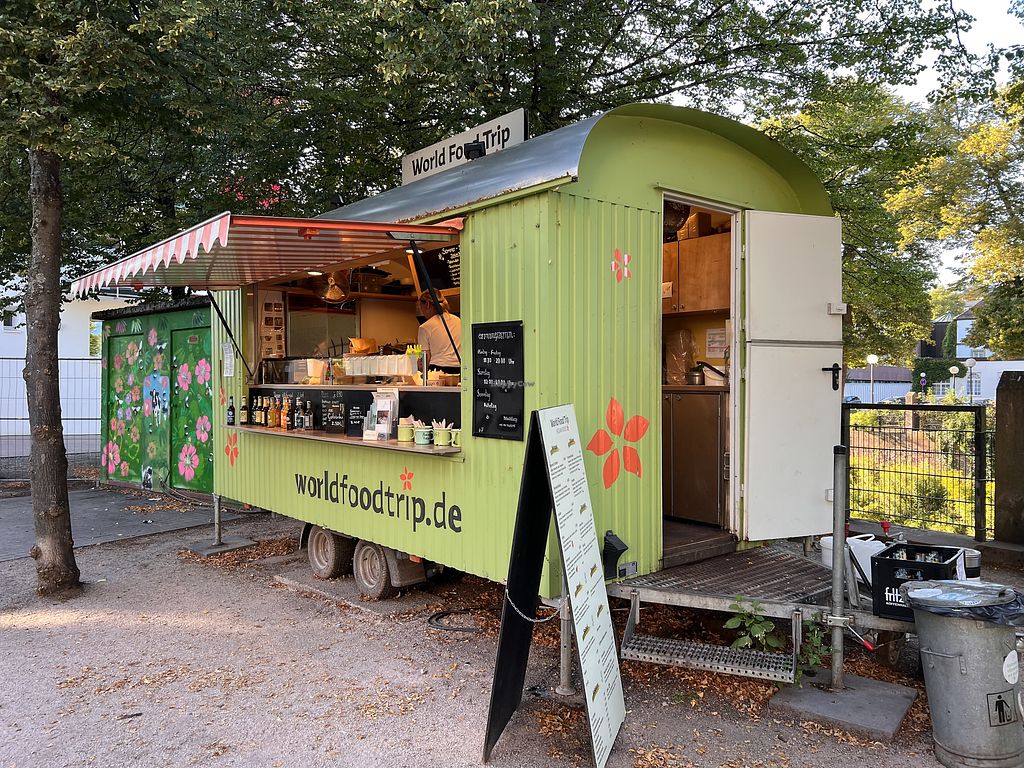 Mobile food van parked at this spot near the Schwarzbach, on the outskirts of the city center, as of Aug 2020. Offers burger and bowls in addition to weekly changing menu. Directly beside the truck are some standing tables. Reported closed October 2022.