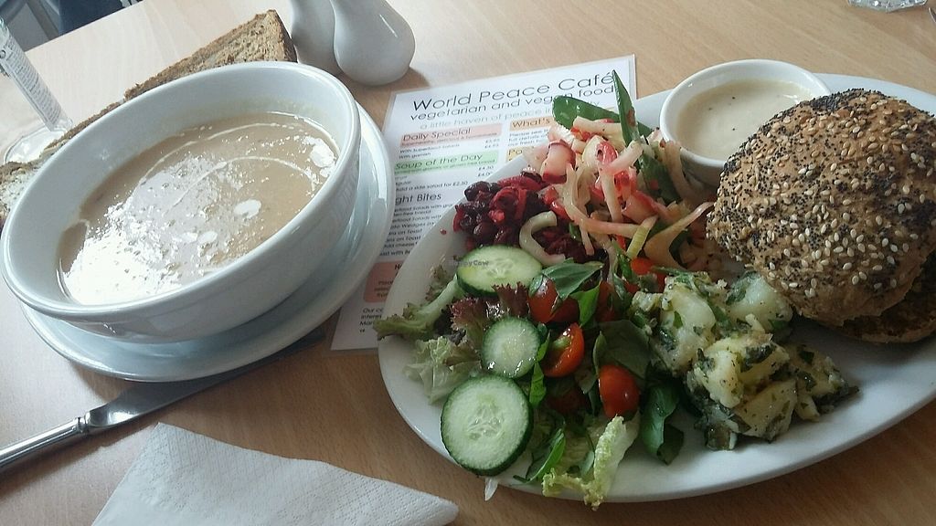 Fresh, homecooked, mainly vegan food. The atmosphere is tranquil. Well, it is a Buddhist meditation centre! You can book in for meditation and lunch, or just come for lunch. the cafe is run by volunteers, but the service has always been helpful and friendly.