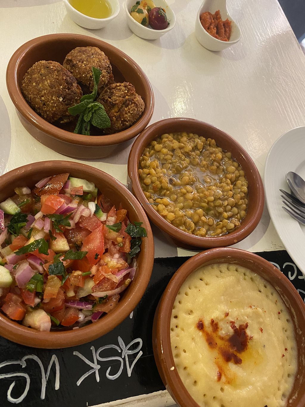 Lentils, hummus and albargin