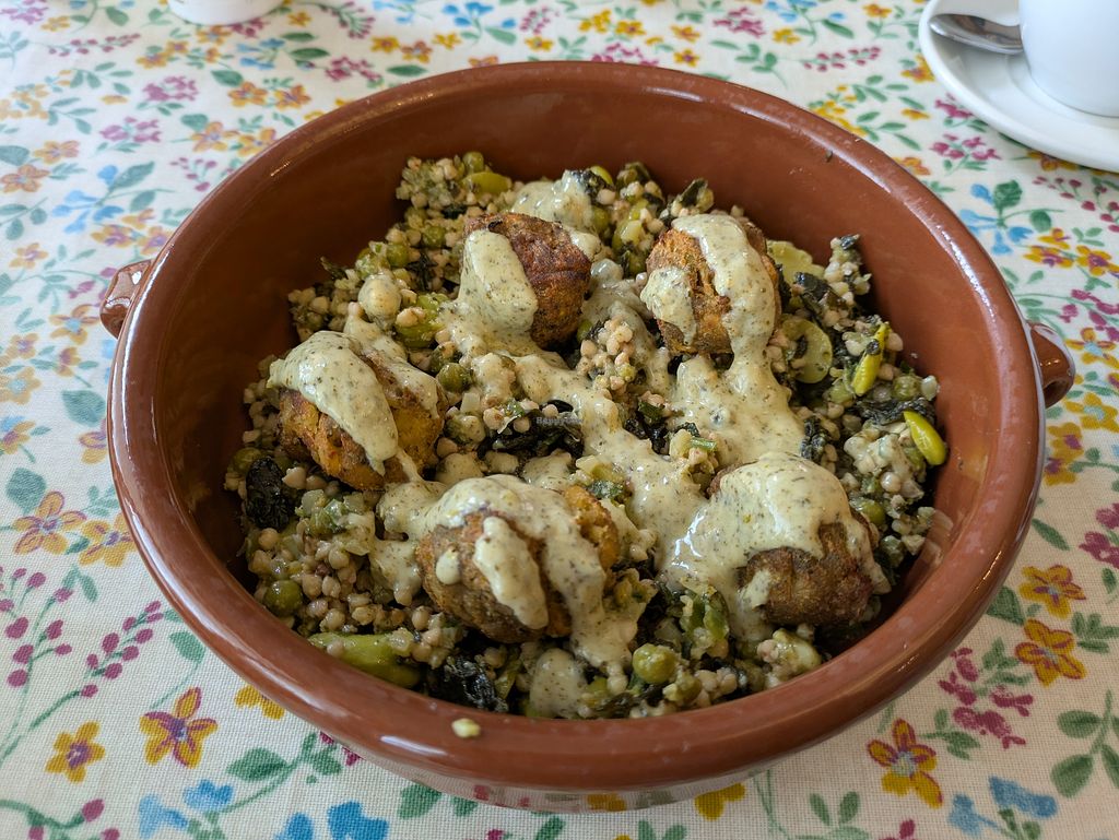 We had a really lovely lunch here. There latest menu includes a number of vegan options (including on the children's menu and breakfast menu) and the food really exceeded all expectations. The falafel wrap was lovely and very filling. The zesty, falafel salad was incredible, original and so much more delicious than I had expected. Top notch vegan options, very friendly staff, dogs welcome and a lovely location. We would love to return to try the vegan afternoon tea (pre-booking required and bound to be delicious!)