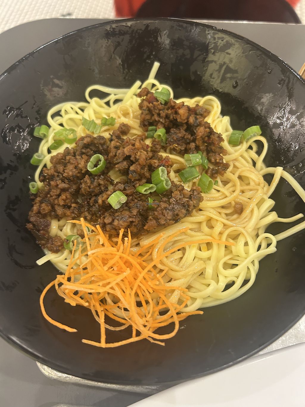 Stopped in bc it’s was advertising a very curious combination. (Bagels and dumplings) The menu ended up looking very interesting and we tried the general tso’s tofu, soup dumplings with impossible meat, and impossible Dan Dan noodles. They have a lot of vegan options. Would go back again.