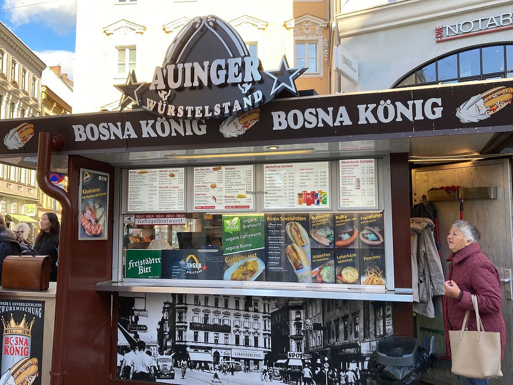 Lacto Ovo Fast food Beer/Wine Take-out European Austrian Non-veg Serves meat, vegan options available. Fast food stall serving clearly marked vegan dishes. Vegan offer includes bratwurst, currywurst, and Bosna. Open Mon-Sun 09:00-04:00. More