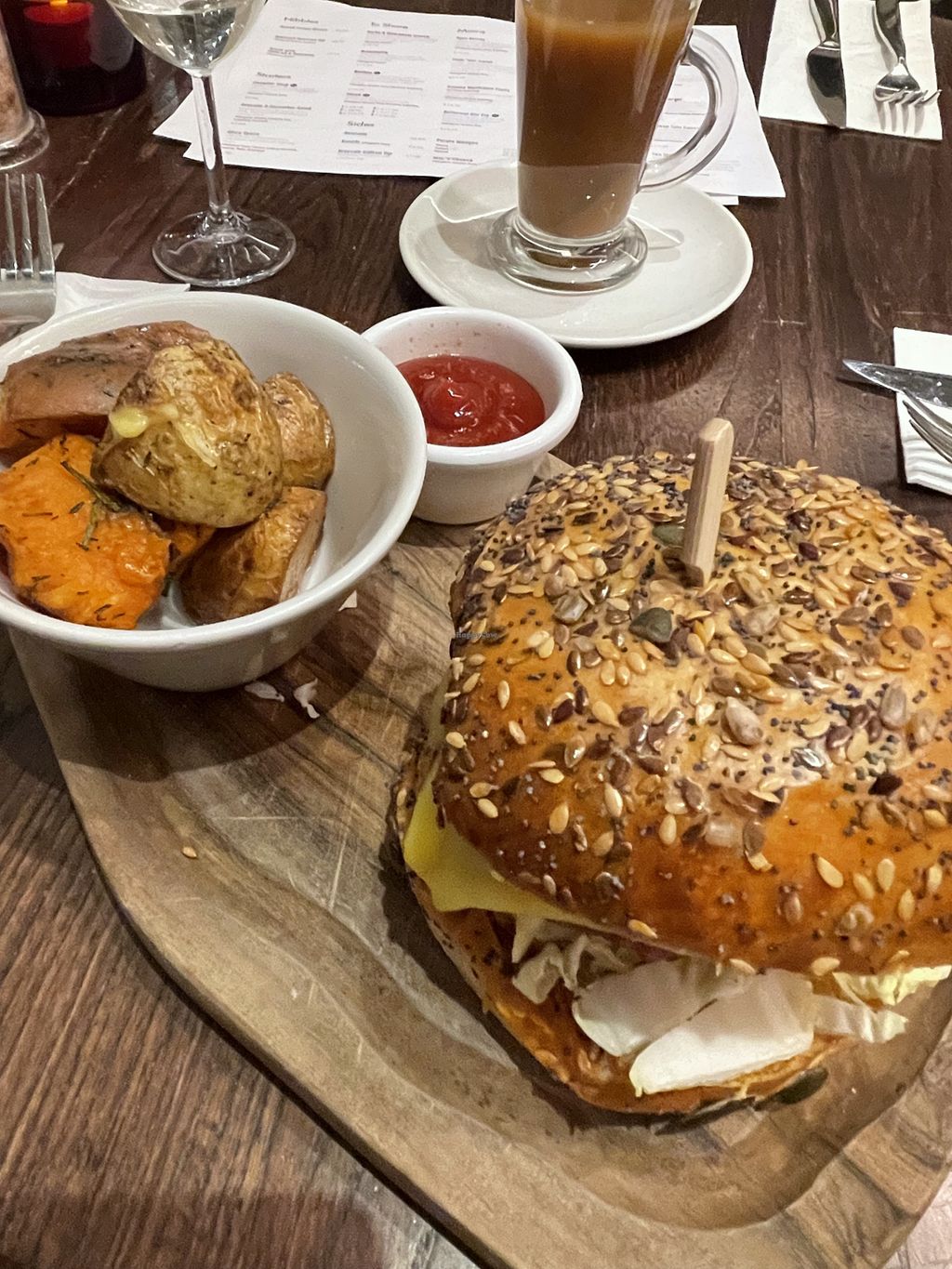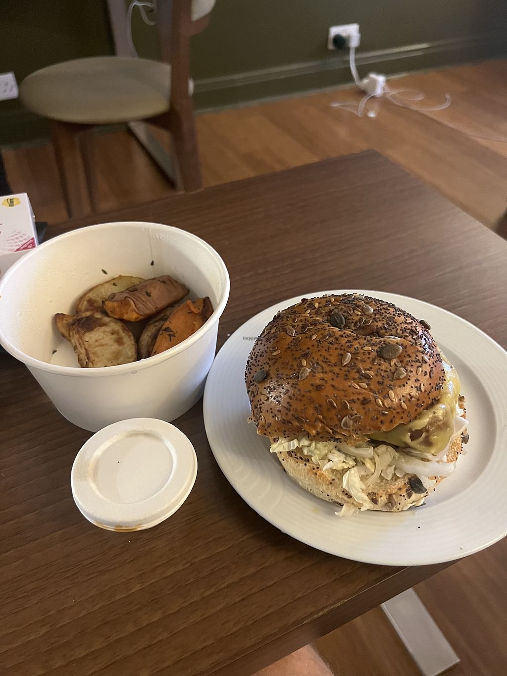 Vegan truffle burger with potato wedges