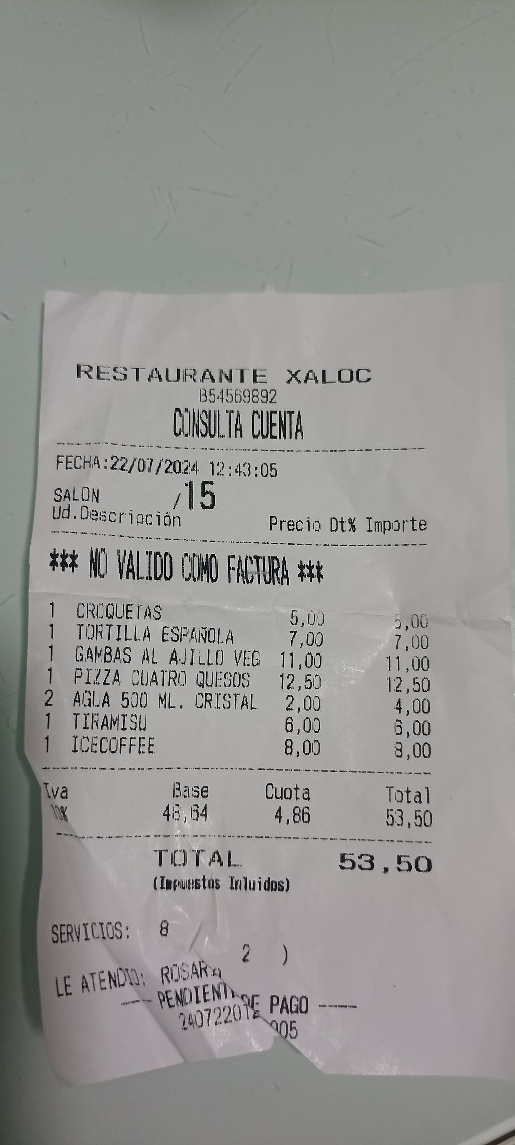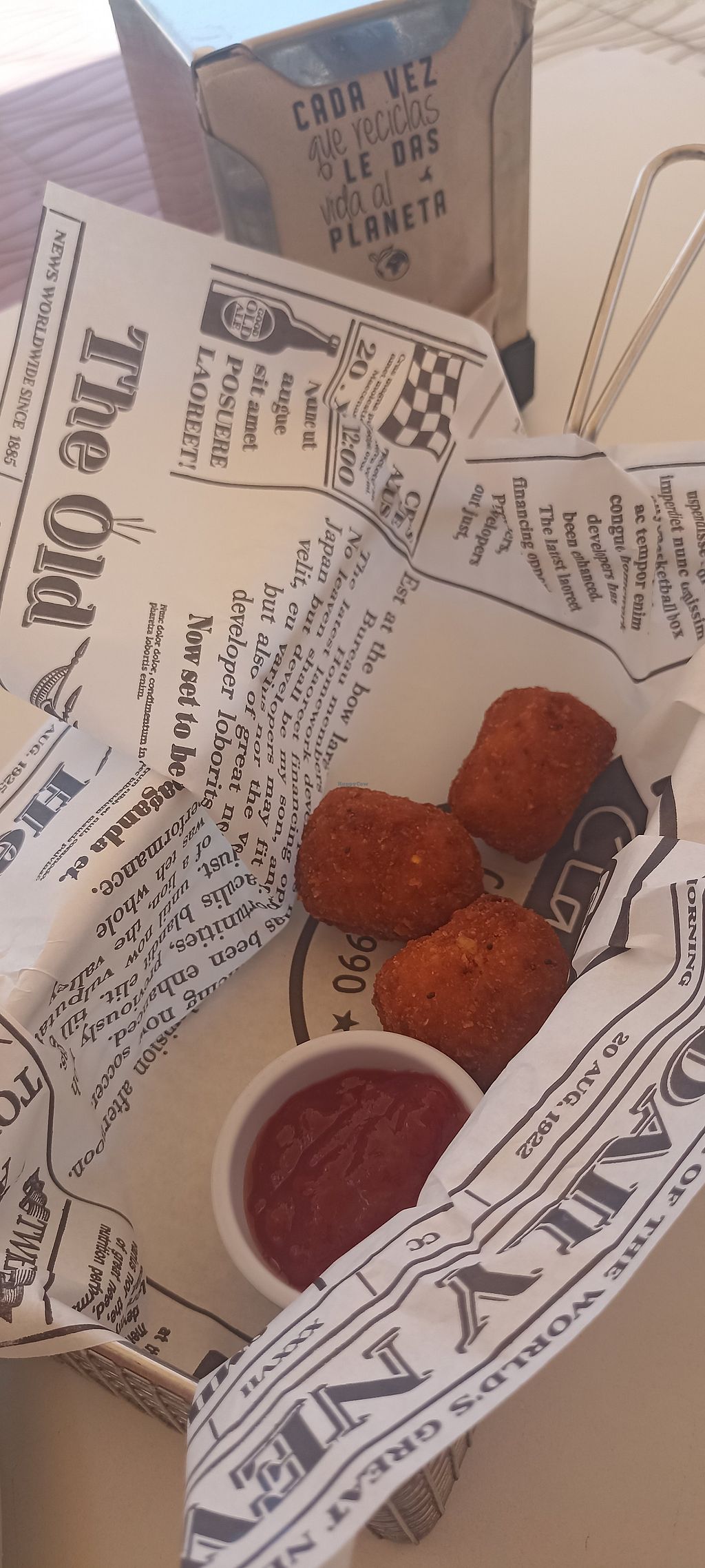 Fuimos con muchas ganas al ver el menú, pero la calidad de la comida nos decepcionó. Lo que más nos gustó fueron los calamares andaluza, pero el arroz estaba algo duro y la ensaladilla y las croquetas no estaban muy allá😒