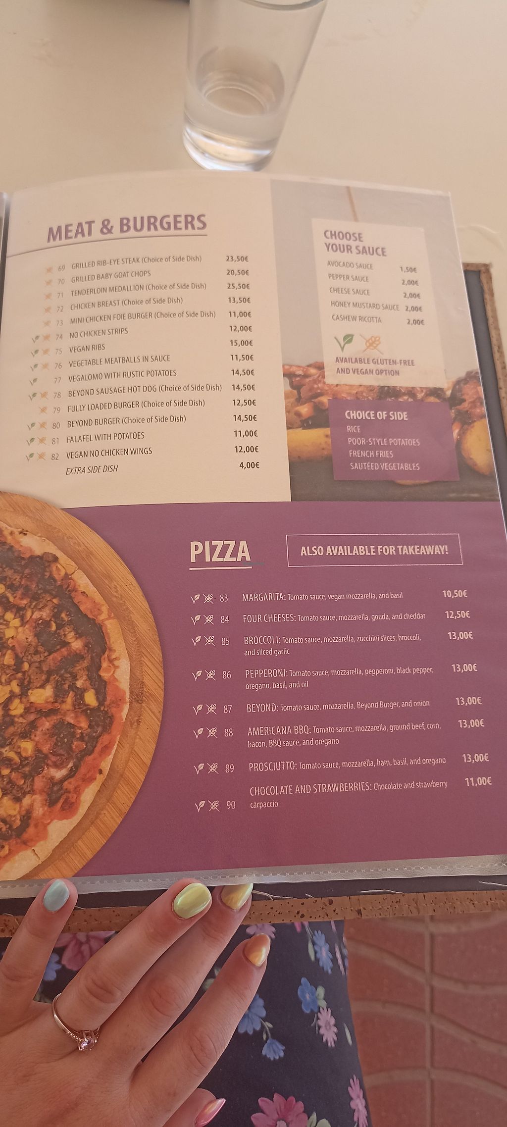At first we were surprised and very happy to see a restaurant with that many different vegan dishes or at least options. Turned out that Pizzas are only served “at night”, which is strange because the restaurant closed at 18 🕧 clock, other dishes were in most cases not available. We ordered the vegan octopus with aioli and bread as starter, all we got was a discounter roll with discounter aioli and a “vulcanised” Octopus with A LOT of smoked paprika and cooked potatoes. No garlic, no citrus, nothing else.