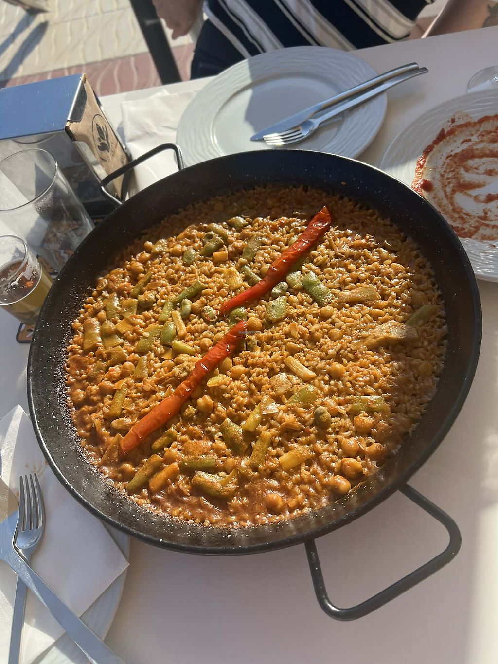Almost all the dishes can be made vegan, and the owner is clearly very knowledgeable and enthusiastic about veganism. Very nice surprise right at the beach! We went back another day because we had to have the paella one more time. Had paella with chicken and chorizo and a paella with vegan shrimps. As a side pumpkin croquettes and tomato stuffed with cashew cheese. All tasty.