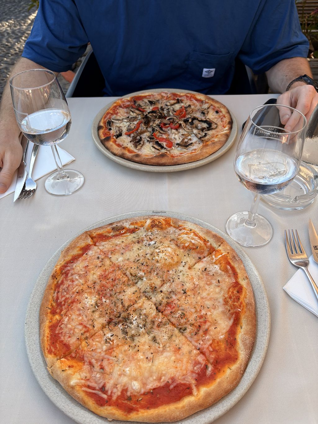 Mushroom asparagus pizza (ask for vegetarian pizza with vegan cheese) …