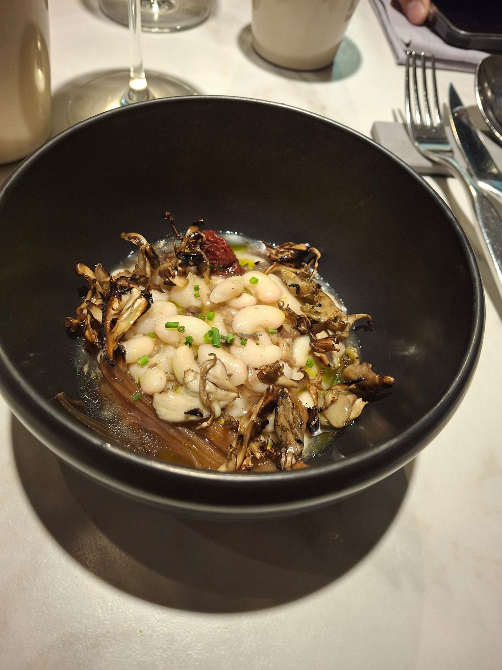 We heard good things about him (from people who are not vegan), we were happy to find out that he also has vegan options, so for my birthday my partner booked us a place in the evening. Routine industrial design, including IKEA straw lampshades that are now everywhere in the city, from the cheapest to the most expensive, it turns out. But the main thing is the food. We were debating whether to go for a surprise tasting meal at 70 euros, or a first two, main and dessert of choice at 50 euros. In the end we chose 50 euros. It was a mistake.