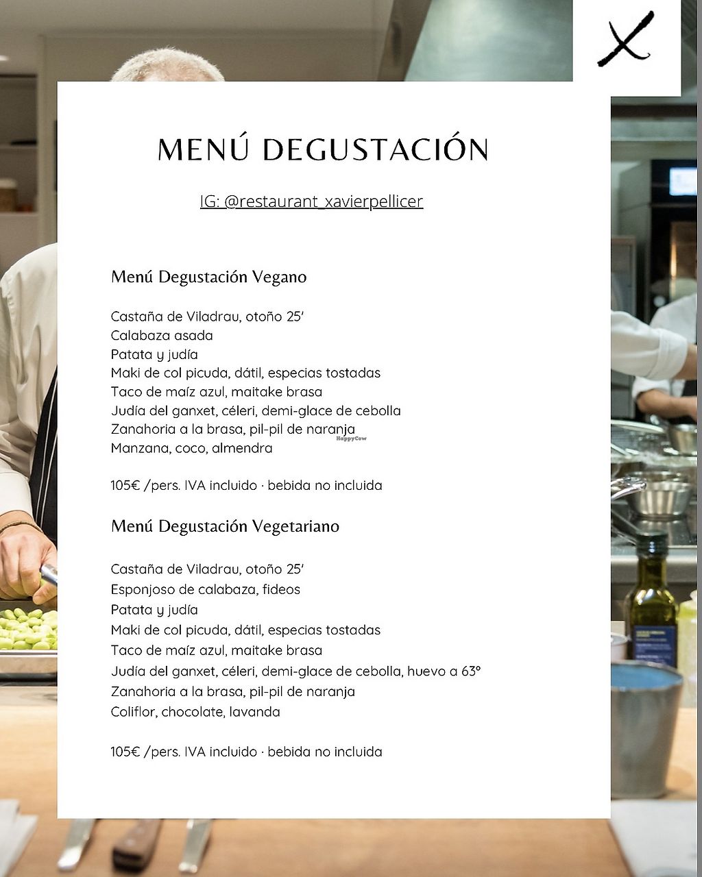 Separate vegan menu of sumptuous dishes. A bit more expensive but well worth it. Wonderful table servers and sommelier who explain the background to what you’re eating and drinking. Xavier was in the kitchen which is open plan so you can see everything.