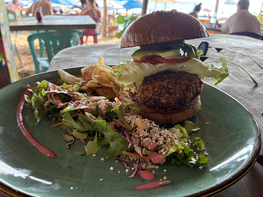 Serves meat, vegan options available. Beachfront restaurant with several vegan choices including a mushroom burger, veggie tacos and cauliflower wings. Recommended to try a pina colada. Staff understands requests for items to be made vegan. Open Mon-Sun 10:00am-11:00pm.