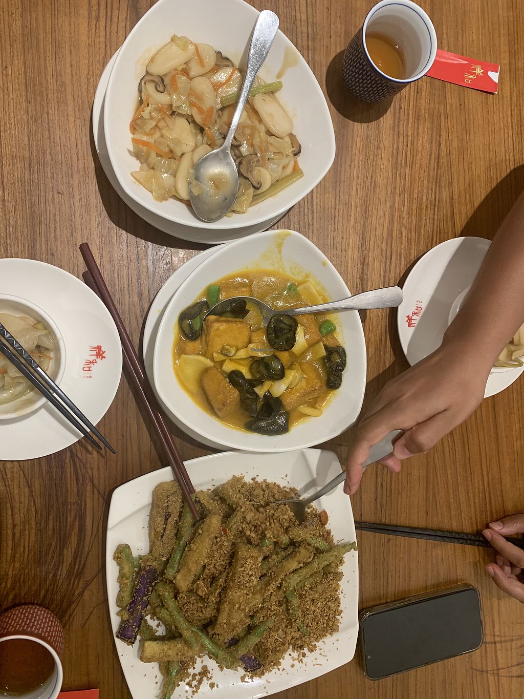 Read moreMy favourite was the wontons in chilli oil. The fried rice with no egg was delicious. Egg plant dish was delicious. The sechuan vegan intestines were delicious but some people in our party didn’t like the sechuan pepper flavour. In my opinion one of the best greens to have is the sweet potato leaves. These ones were nice but missing some flavour.