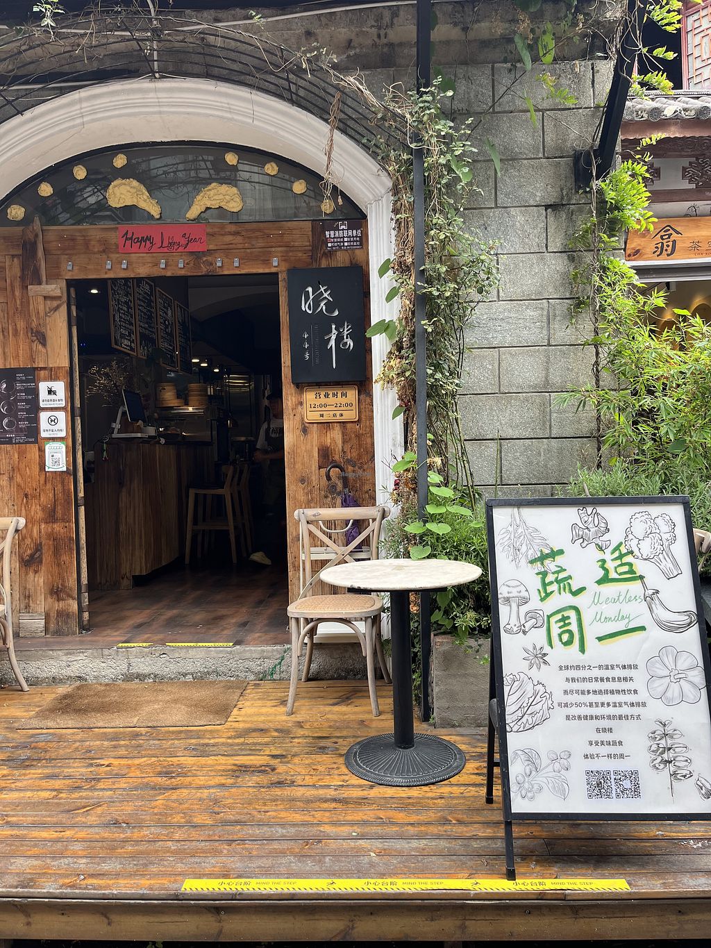 Serves meat, vegan options available. Mostly plant-based restaurant. Many dishes can be shared and tried. Chef Lee is passionate will tell customers about the cuisine and ingredients of each dish. Meatless Mondays. Must try if you visit Dali Old Town. Not a touristy place but the restaurant is classy. Ecological cuisine, seasonal and local ingredients, limited menu and minimize waste. Vegan burgers, shaomai, vegan Flatbread. Address: 大理市博爱路洋人街中心广场44号. Open Mon 12:00pm-10:00pm, Wed-Sun 12:00pm-10:00pm. Closed Tue.