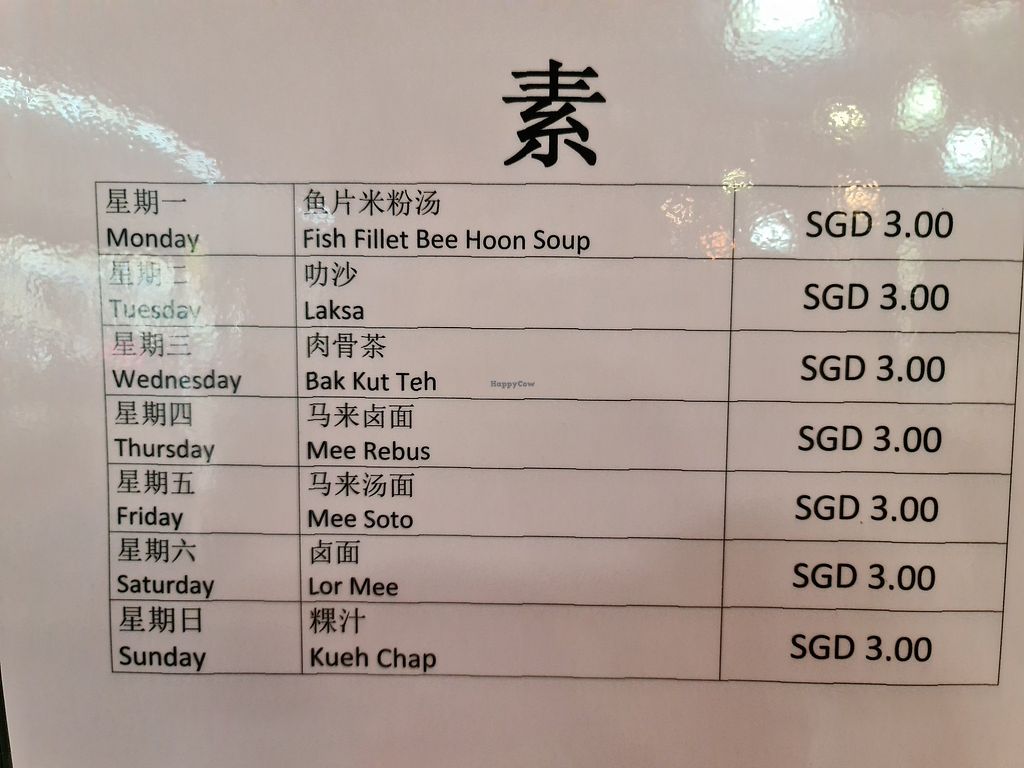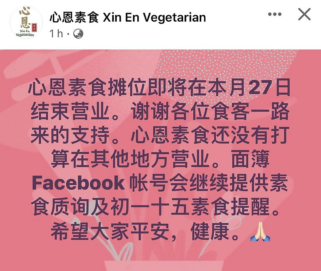 心恩素食 is a stall in Gourmet Street Coffee Shop. On the menu are mee soto, fish slice soup, laksa, lor mee, bak kut teh, mee rebus, kway chap and mee siam. Offers daily specials and vegan options. Reported closed January 2022.