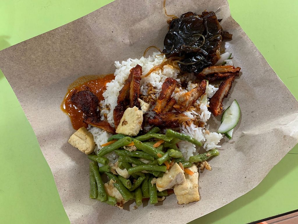 Stall serving economic rice and bee hoon, chicken rice, yong tau foo, and mee rebus. Mostly vegan but sells eggs. Reported closed July 2023.