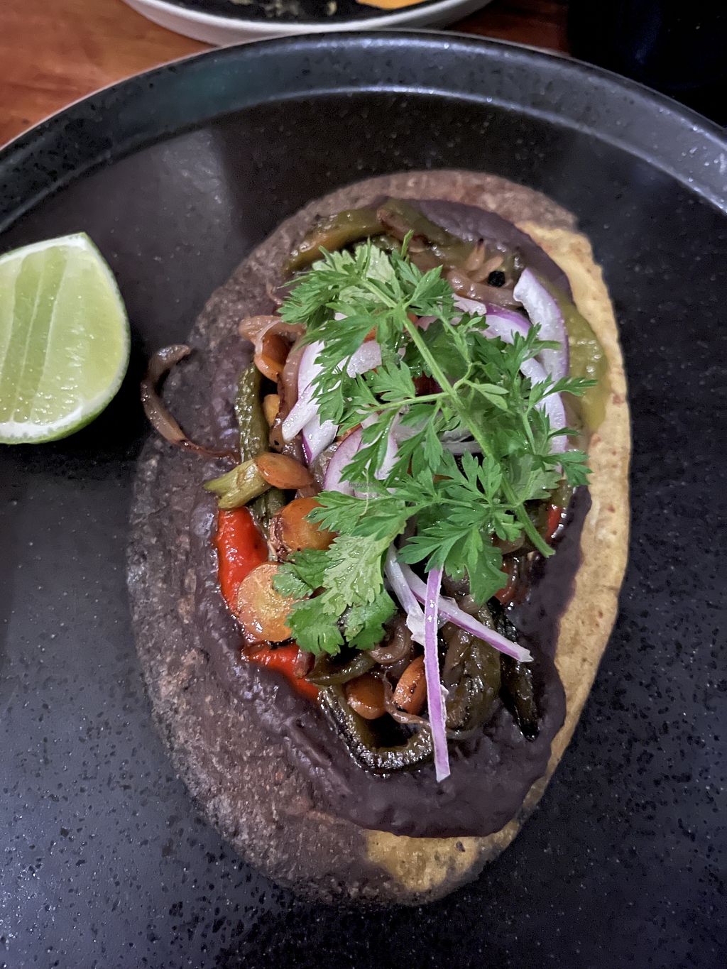 Serves meat, vegan options available. Bar offering clearly-labeled vegan/veganizable dishes like "Sikil Pak" (tomato and pepita spread), "Tamal Oaxaqueño" with mole madre, and prickly pear sorbet. Also serves "Huarache," "Sope," and various tacos, alongside sides like "Arroz y Frijol" and "Refritos Pintos". Open Tue-Sat 4:00pm-10:00pm. Closed Sun. & Mon.
