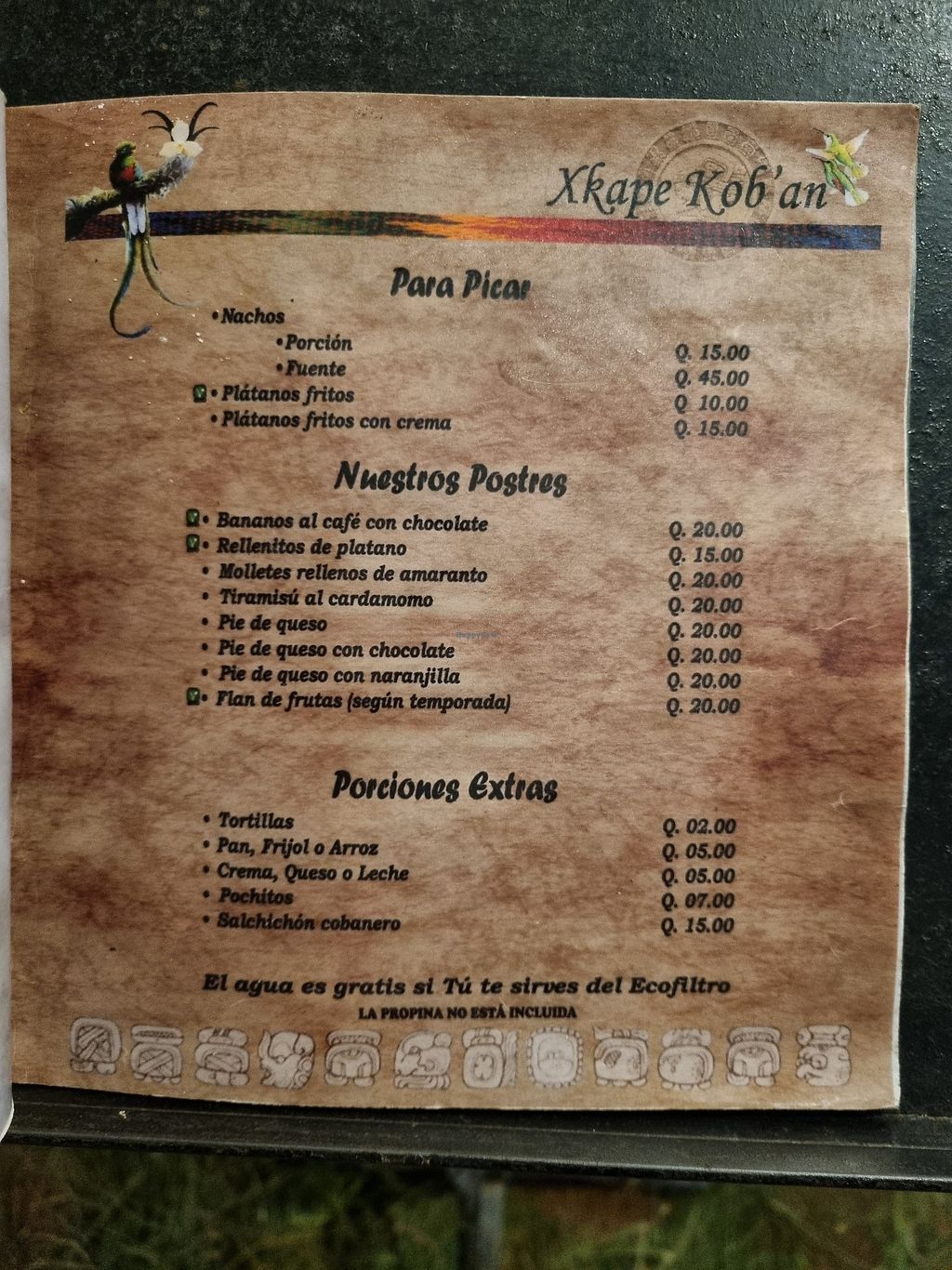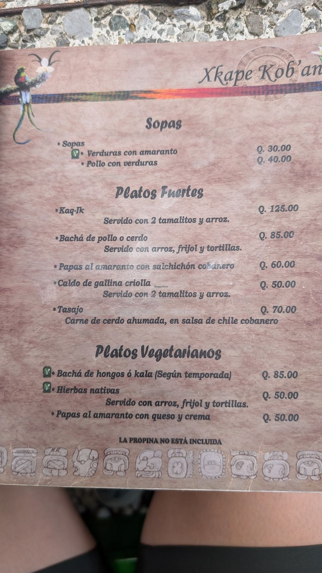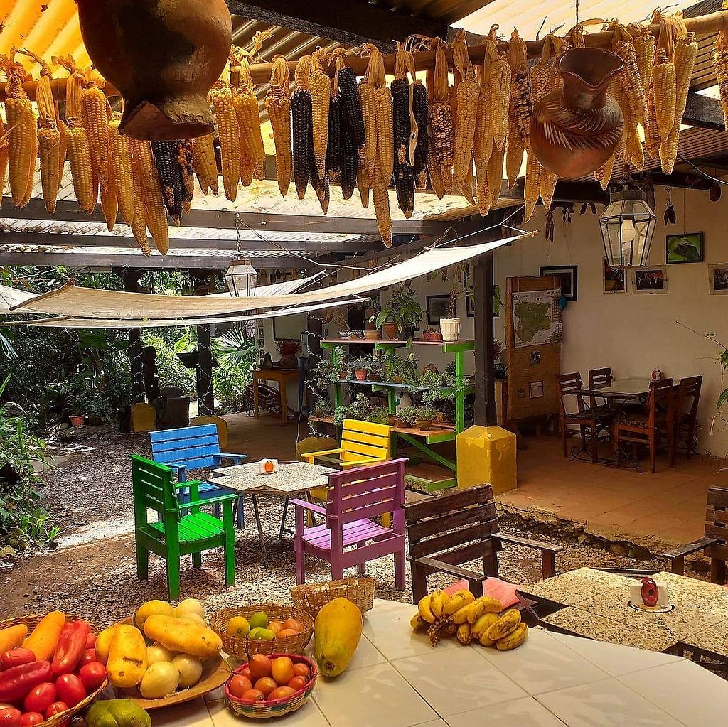 Serves meat, vegan options available. Q'eqchi Mayan restaurant offering traditional vegetable dishes made from indigenous ingredients. Specify vegan. Open Mon-Fri 7:00am-8:00pm, Sat 8:00am-8:00pm. Closed Sun.