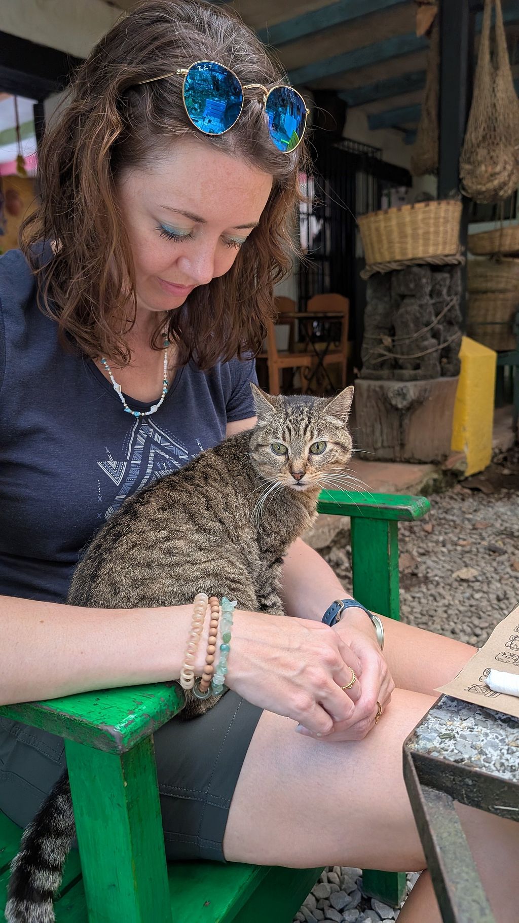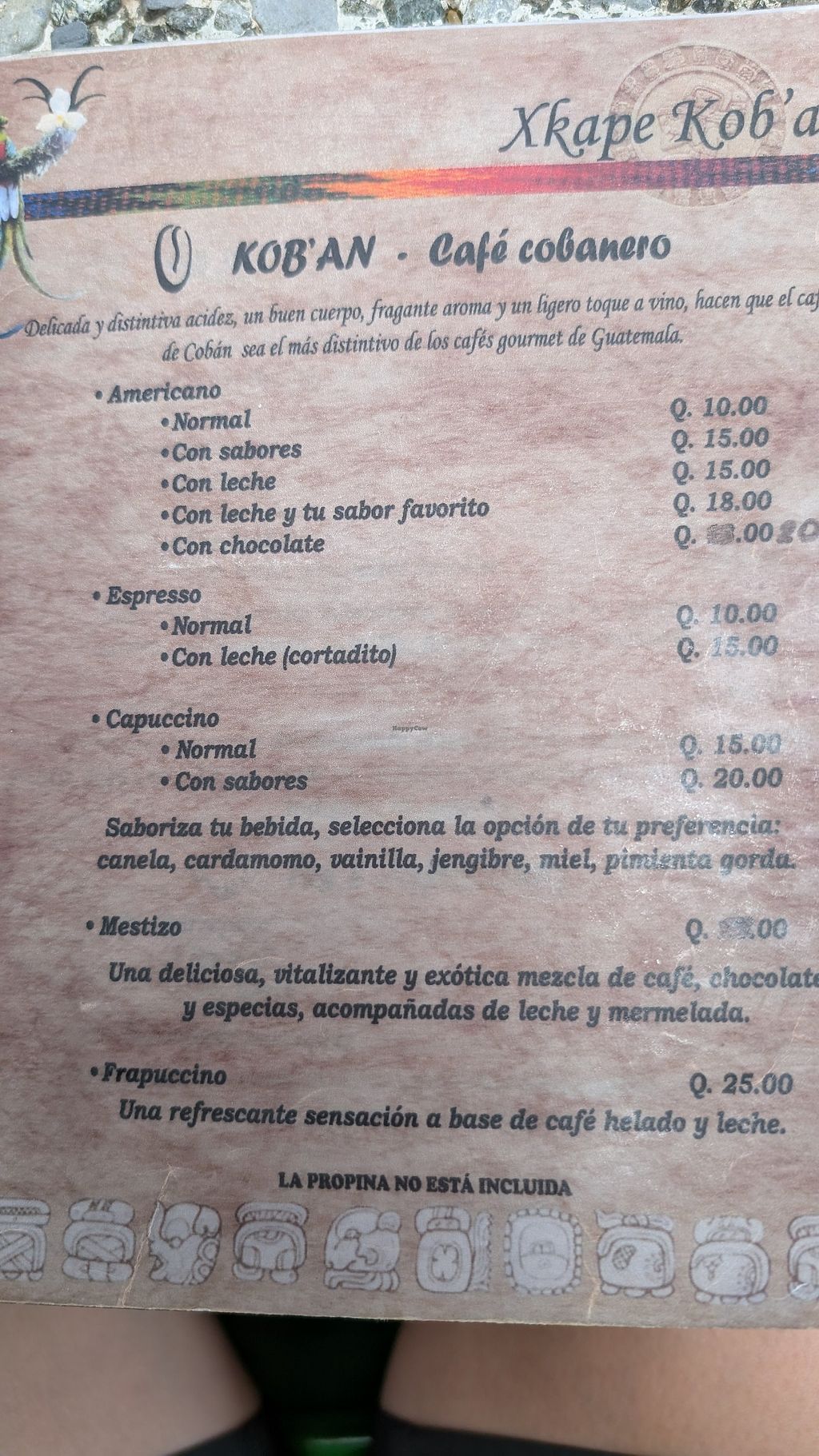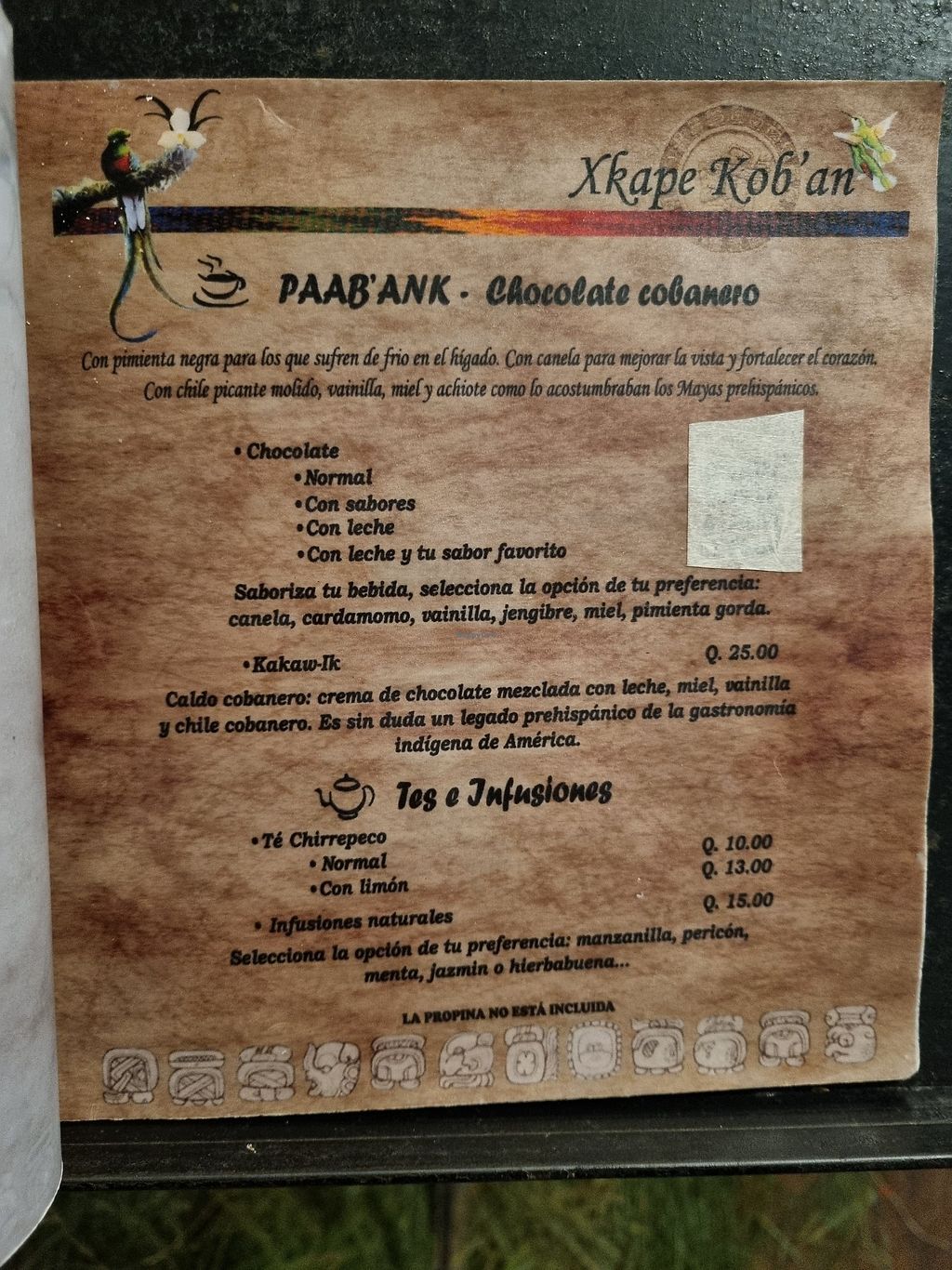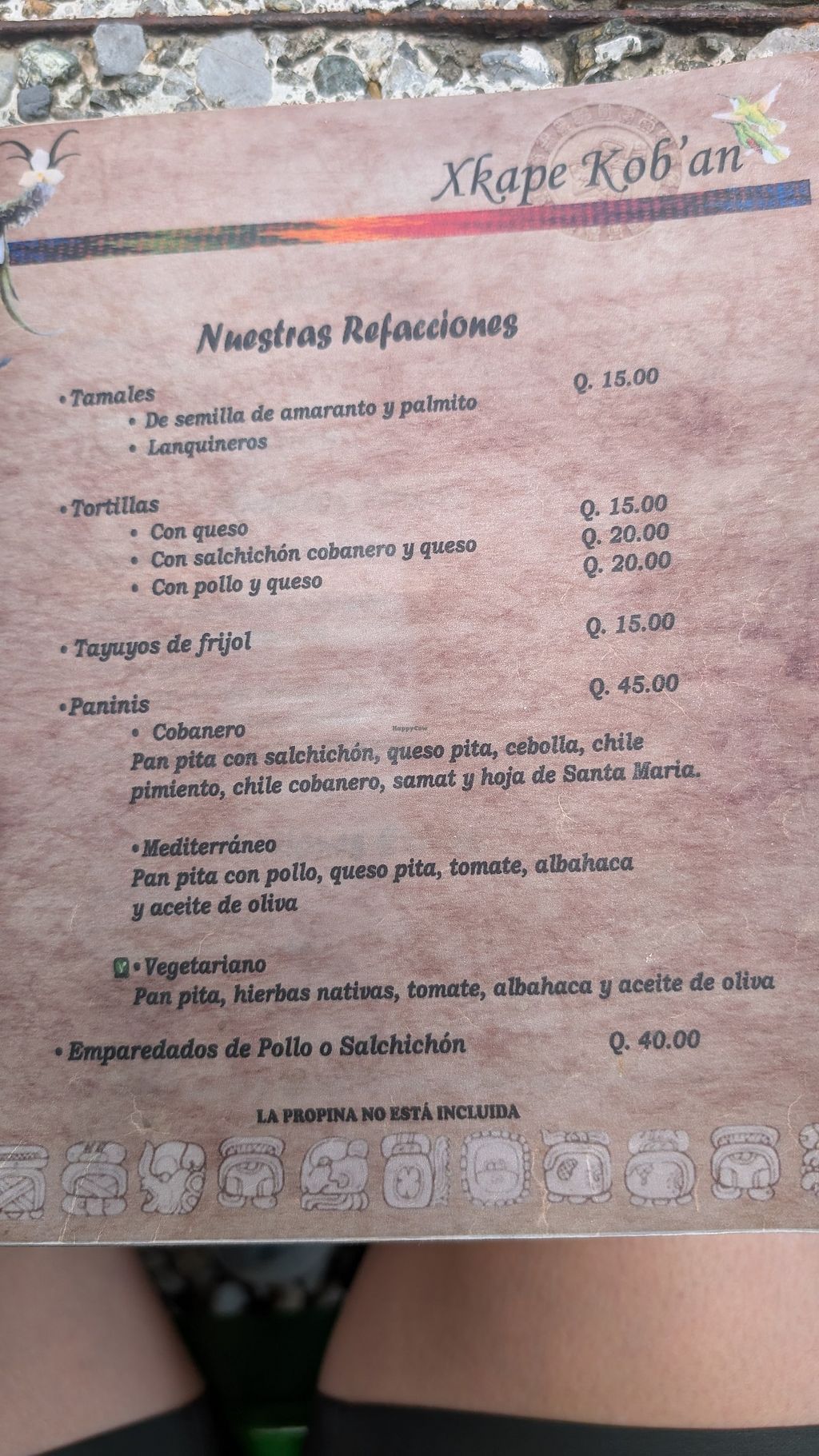 They had a few labelled vegan options. I went for the native herb plate which was some sauted greens, rice, beans and tortilla. The beans were a little lacking in flavour but otherwise the dish was really tasty and wholesome. Very good value for 50Q. Really loved the atmosphere there and very sweet cat!