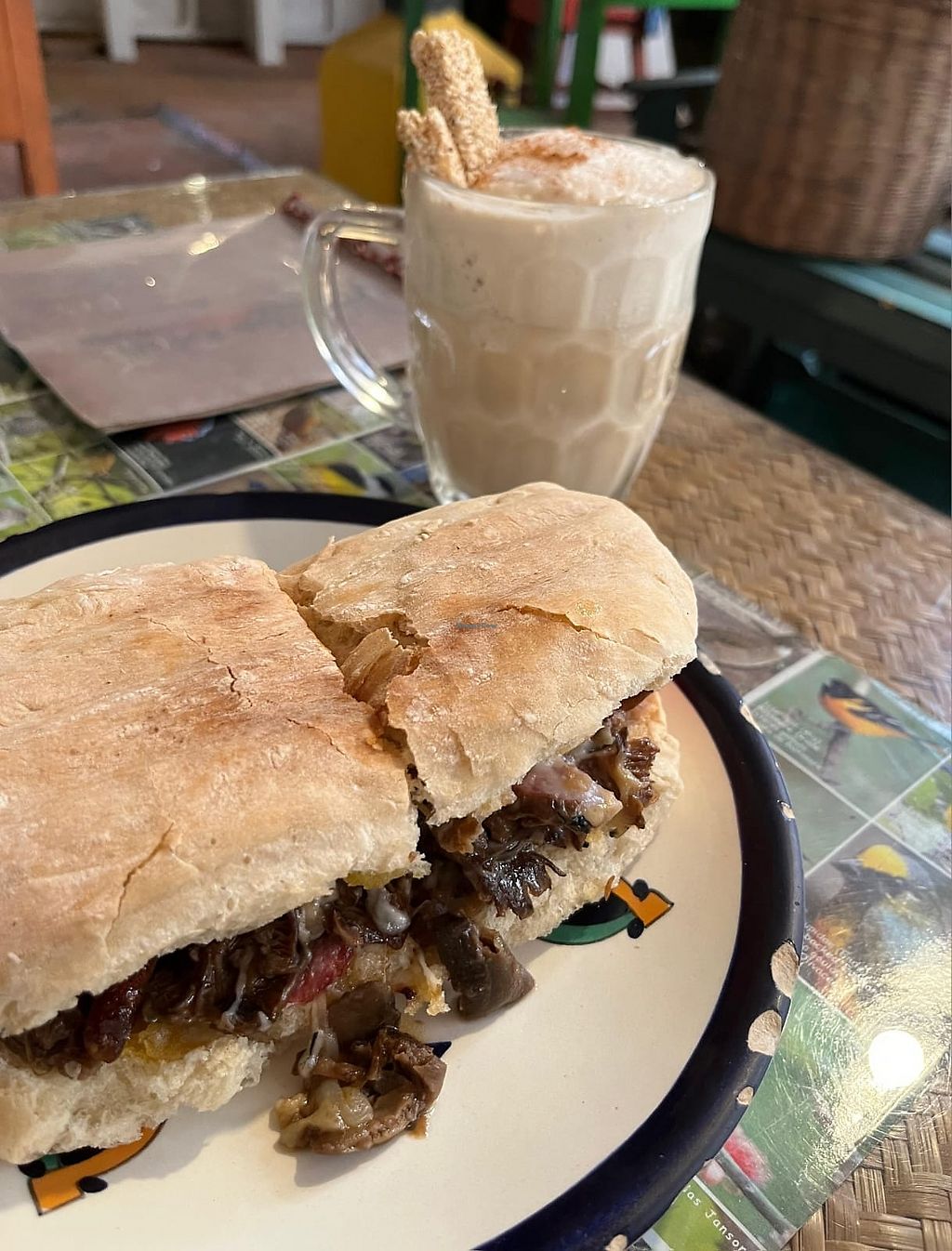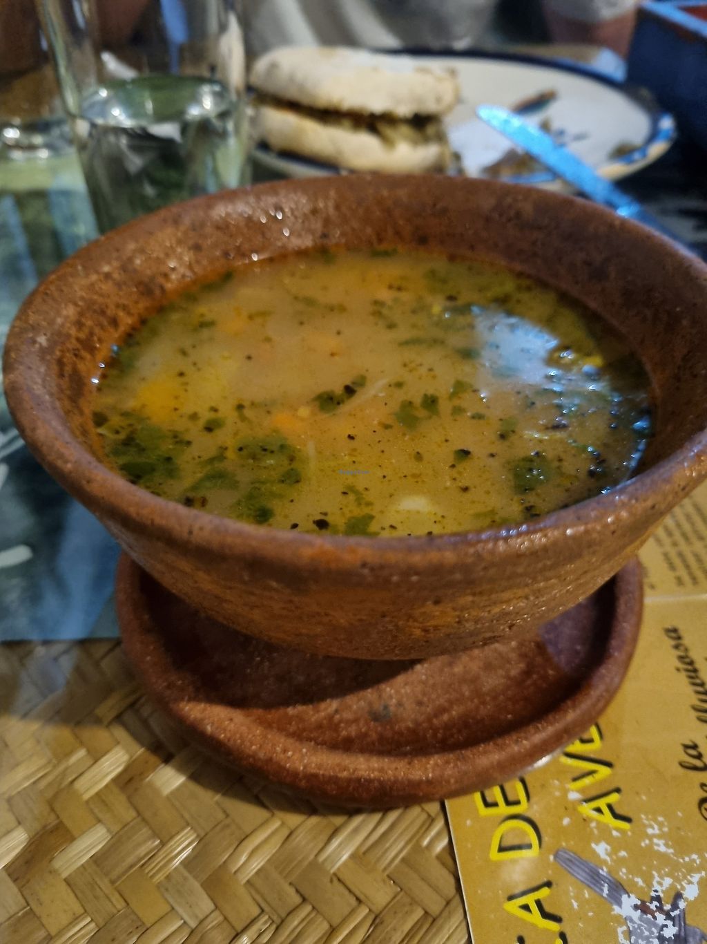 Wir hatten die Sopas Verduras con Amaranto, Panini Vegeteriano, Bachá de Kala und Hierbas nativas.