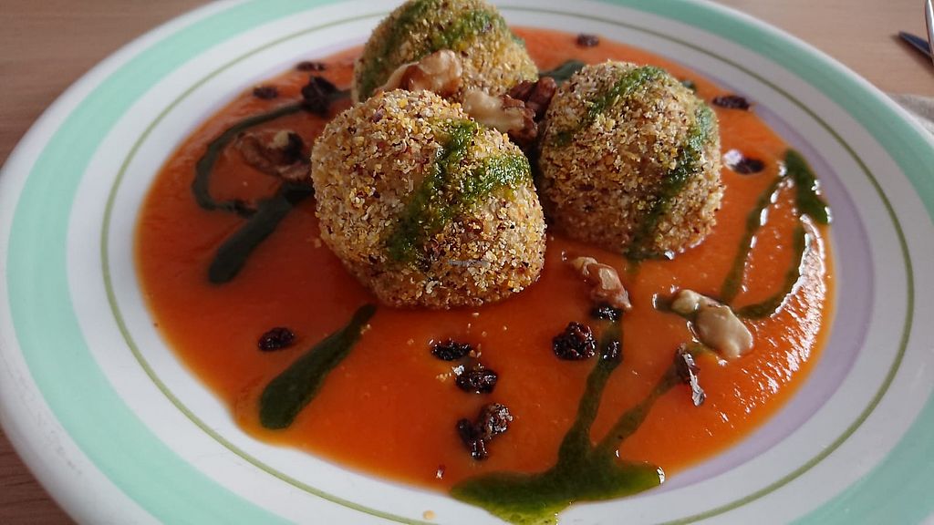 Seasonal dish, 15.50 euro: carrot puree, balls (made of rice, red lent…