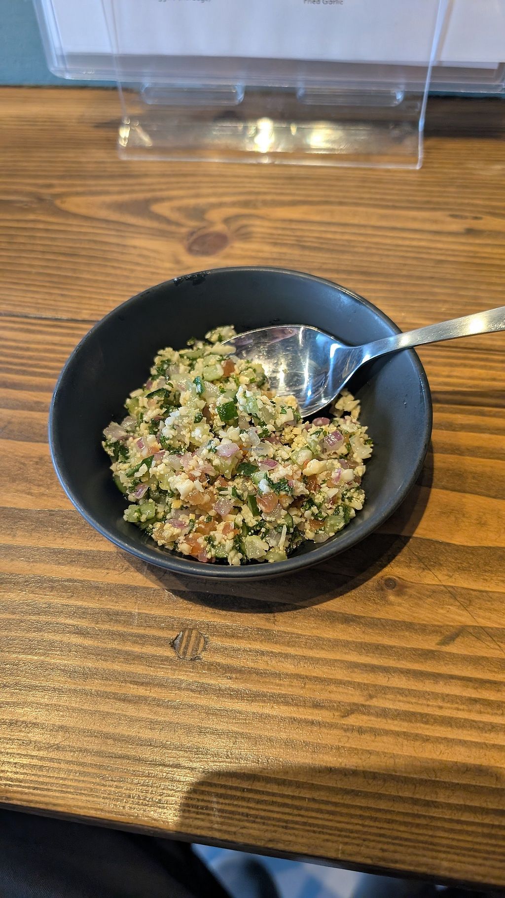 The two owners were tremendous fun to talk to, and I loved the intimate feel of the restaurant. There is limited counter seating as well as a table in the back. The playlist was stellar as well! Even though there was limited seating, we never felt rushed. This is a great gem right next to the base and I will definitely be back!