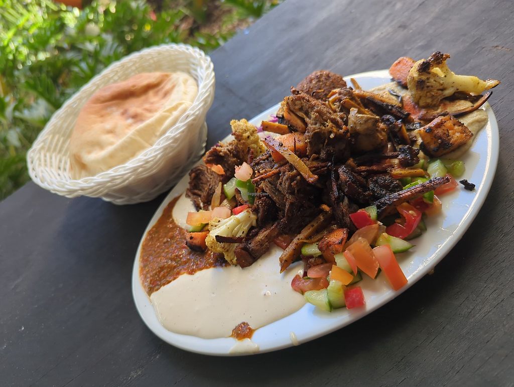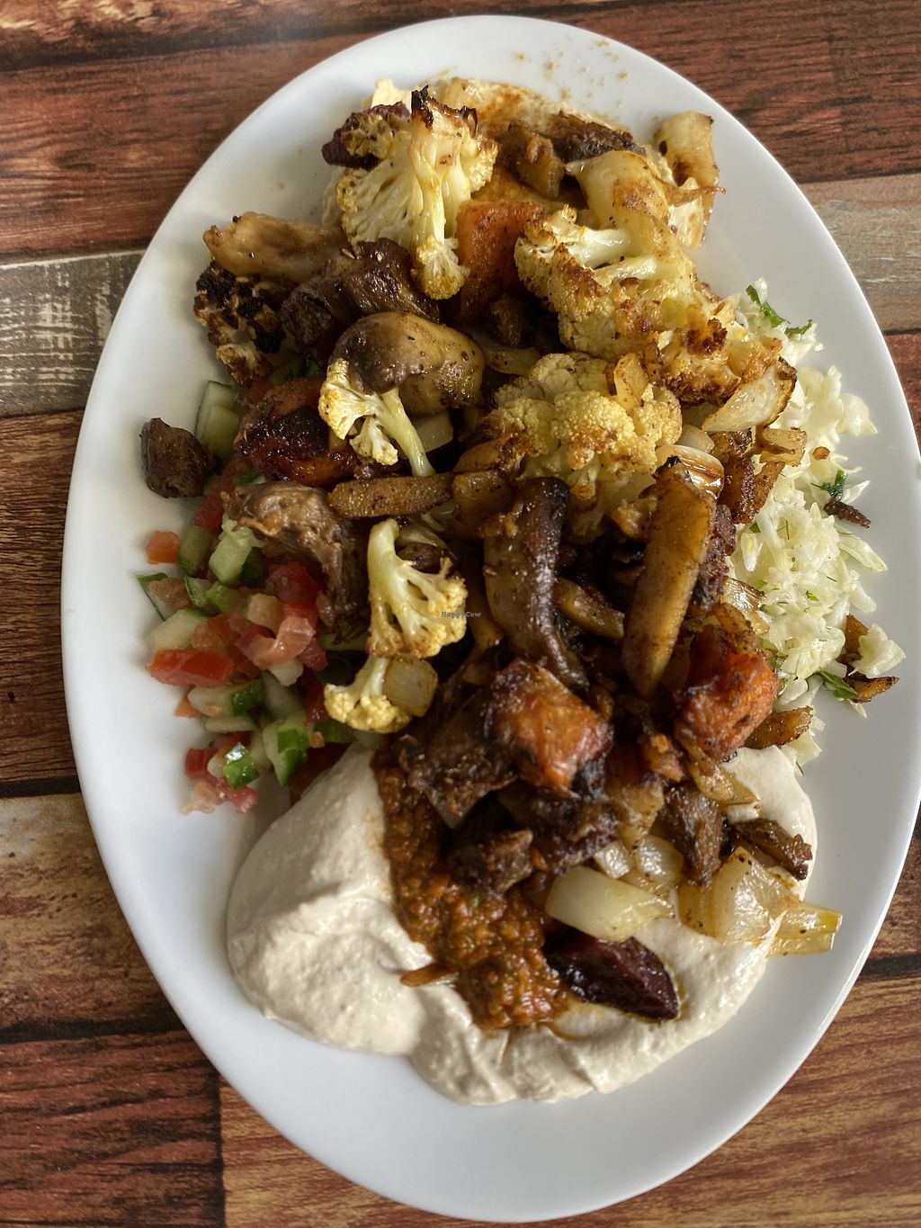 Great combination of flavours, with the salads, plant-based meat, hummus & tahini sauce. A party in our mouth!