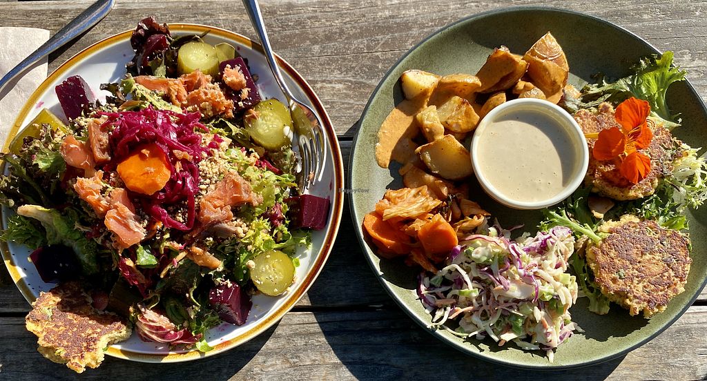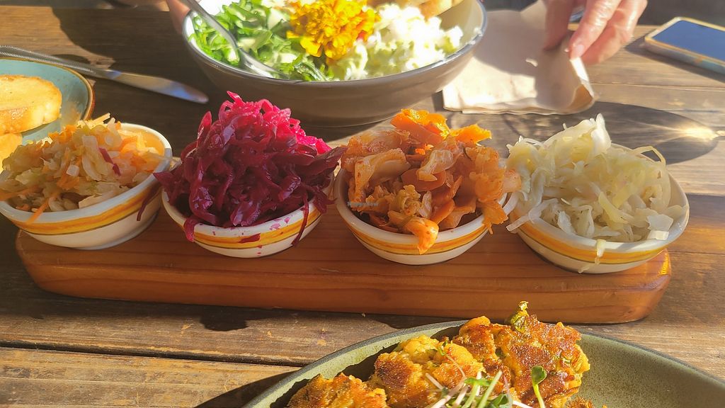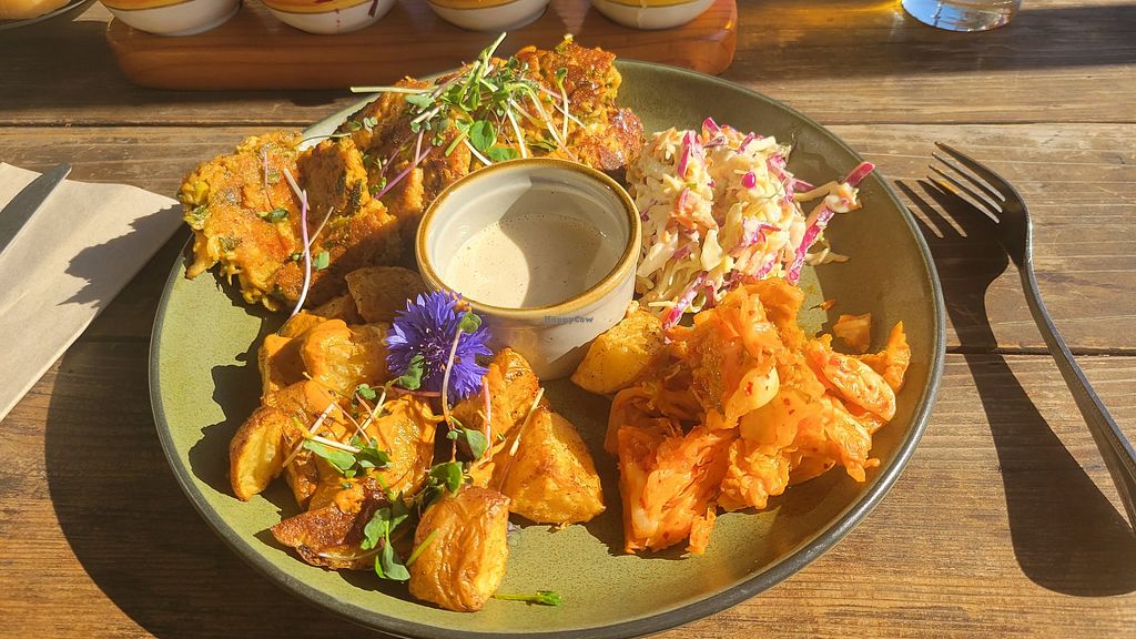 Great stop. Had lions mane cakes, kimchi bowl (no egg) and ferment sampler. Use vegan mayo for dishes.