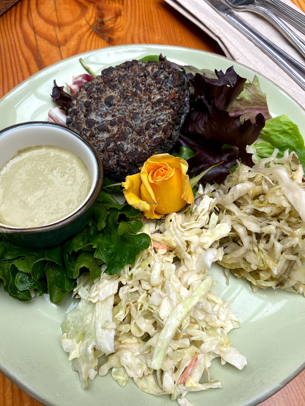 In front of this brew pub are tables and benches for customers who bring their leashed pets. The salads, pickled vegetables, and non-alcoholic beverages are creative and wxcellent. We enjoyed delicious Lion’s Mane Patties yesterday as well as a fabulous salad.