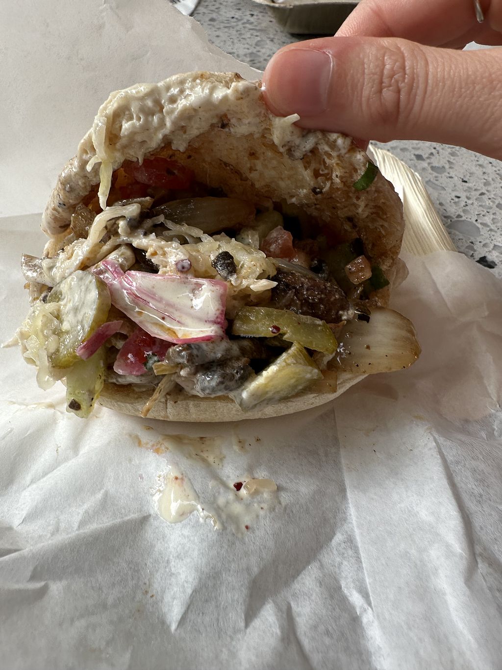 The vegan shawarma is to die for. Super filling and the pitta is fluffy. Stunning.