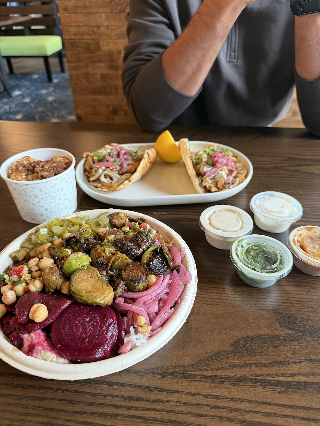 Read moreWith several "build your own" options, you can customize your meal however you want and keep it completely vegan with ease. A menu that clearly labels what I can and can't eat is a blessing, though some items - like amba sauce and tabbouleh - aren't marked as vegan despite not typically containing animal products. I haven't asked about the specific ingredients of those yet.