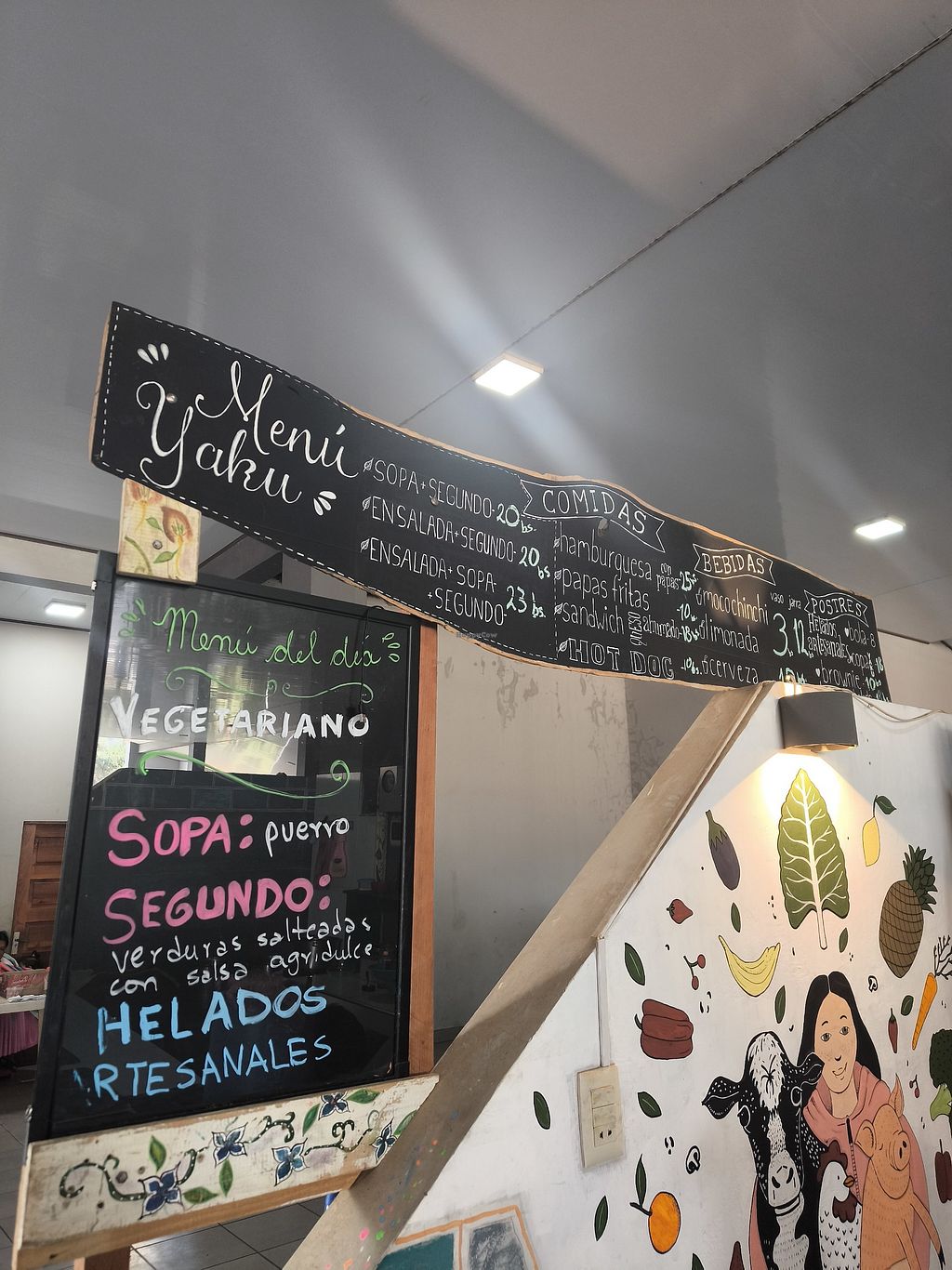 Offers varied vegetarian lunches which includes salad, soup, main course and herbal tea. Vegetarian lunches are mostly vegan or have a vegan option. On Saturdays a special Bolivian peanut soup is offered. In the afternoon there are natural fruit juices, hot beverages like tea and coffee as well as some vegan pastries, beer and wine. Open Tue-Wed 12:00pm-3:00pm, Thu-Sat 12:00pm-10:00pm. Closed Sun-Mon.