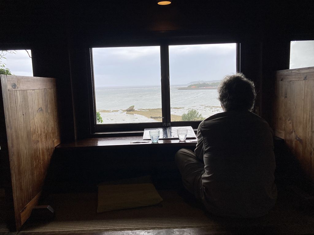They have various set menus that are limited to seven, 15, etc. portions / day. One needs to get there early in order to get one of those. The same is true if you want one of the seats upstairs with the better view over the shore. Please note: Upstair seats mean sitting on tatami mats. If you struggle with sitting "on the ground", opt for the ground floor seats at the tables. You'll still have a good view, just not facing the ocean directly, and a bit obscured by the vegetation.