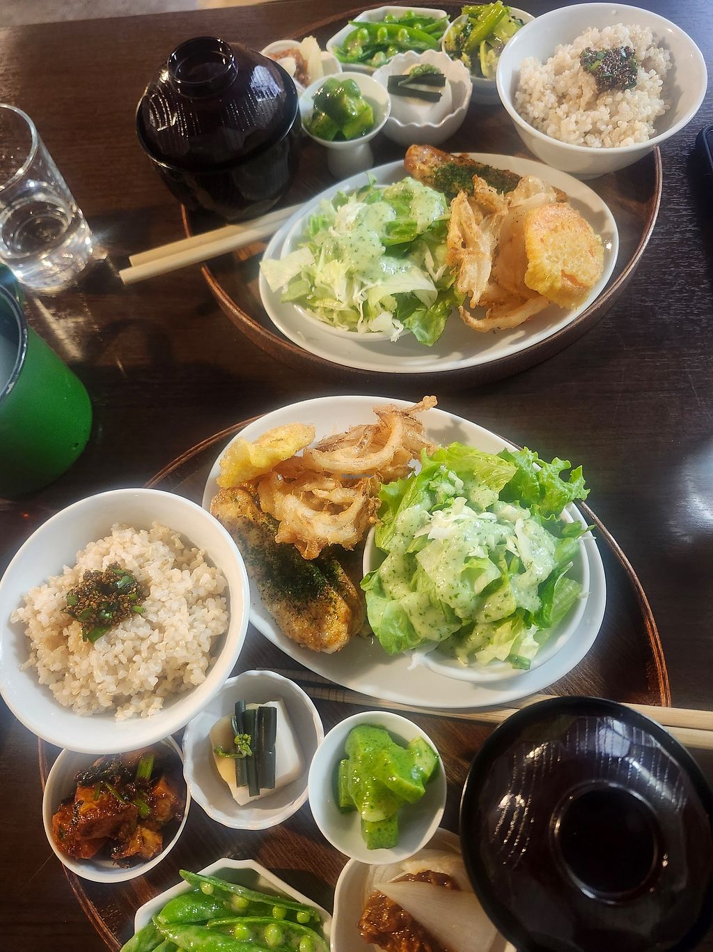 10/10, worth the wait! ordered the set lunch meal and felt nourished / full afterwards. I went during the fall season (early november) and had the following: fresh salad (best dressing ever), tempura (bitter melon, pumpkin, lotus root), fried tofu and fried tempeh, brown rice with beans, pumpkin / squash soup, kelp, seasoned peppers, cucumbers, potato and tofu, persimmons with a creamy sesame sauce. all vegan and delicious😄