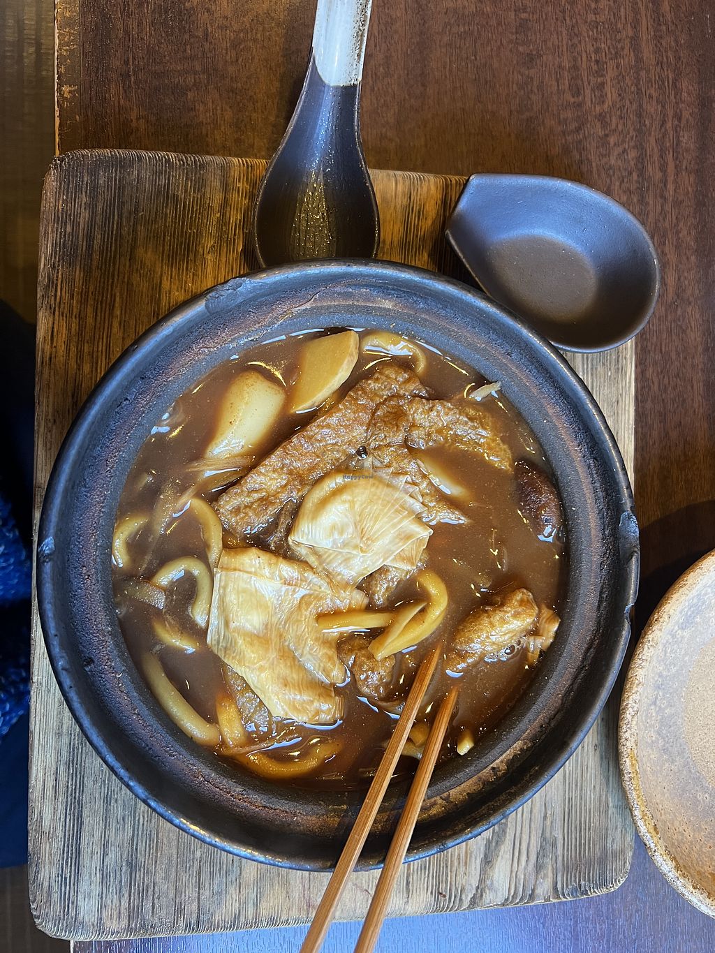 the base miso nikomi udon on my most recent visit along with an asahi …