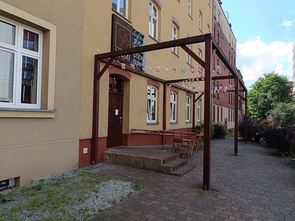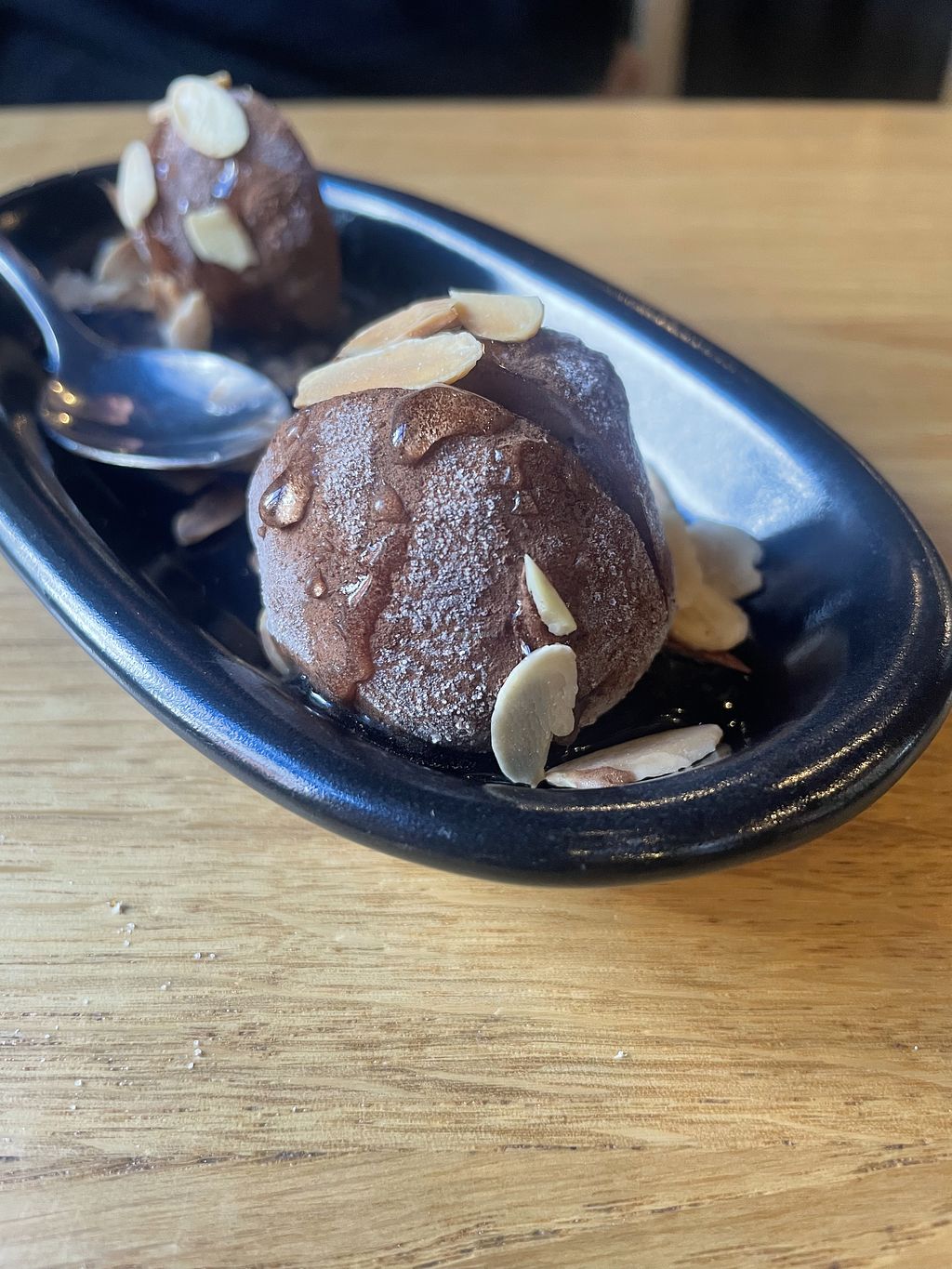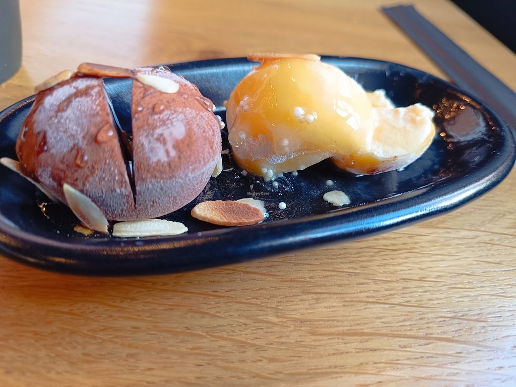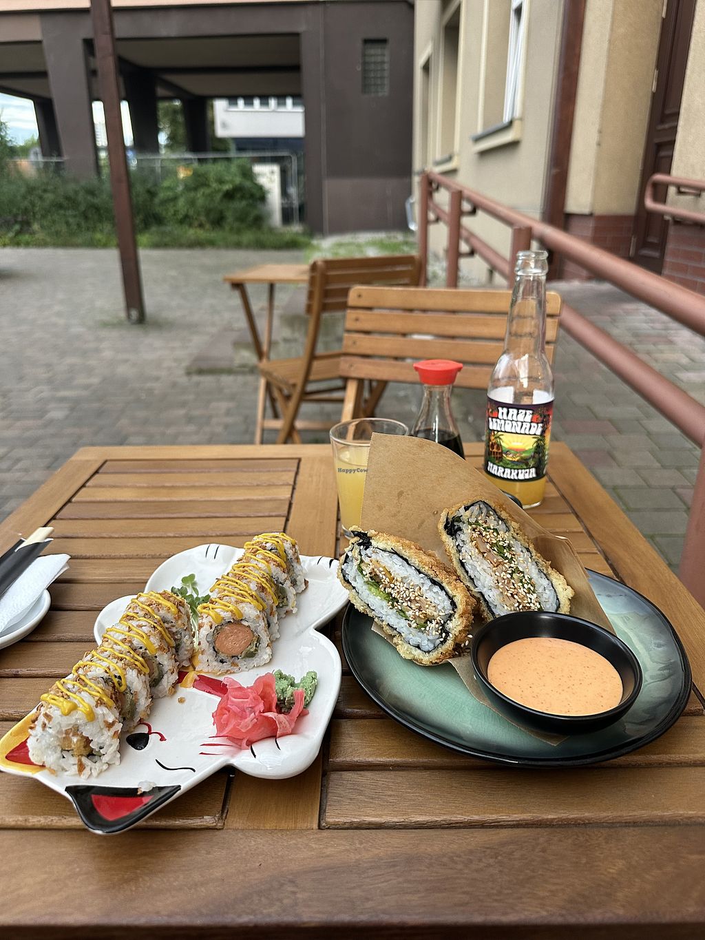 Gyoza pierogi. Edamame and Yuzu kombucha.