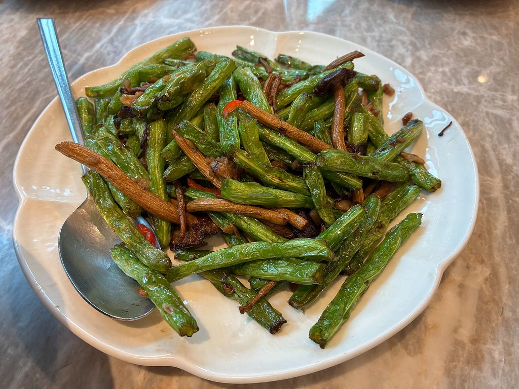 柳松乾煸四季豆. Green bean is fried with Brown swordbelt and pickled radish …