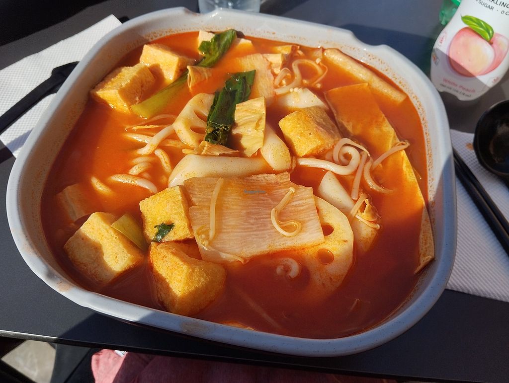 Really delicious, totally recommended. The tomato stock is vegan friendly. They have tons of vegan soy-based protein options. It's really good and quick, but please don't go overboard (like I did lol) or you'll end up with a huge dish.