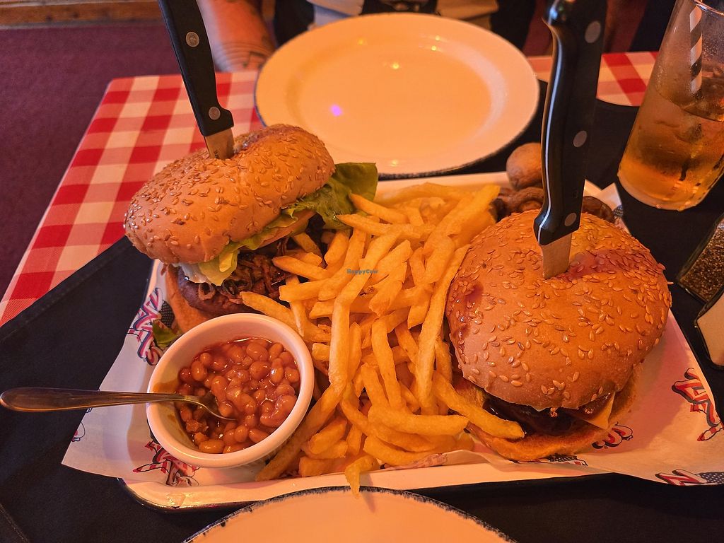 Iv never seen so many vegan burger and hotdog options! Myself and my partner went for a platter that had 2 burgers with fries, mushrooms and Bbq beans, the burgers we had were the PB and I had the roadhouse. Burgers were huge and pretty tasty. We were so full we couldn't finish it all, I will be going back to try their vegan milkshakes and cake! Waitress was really nice and friendly