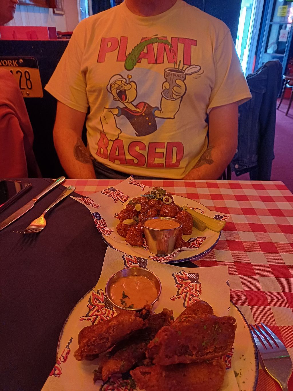 Read moreThe food came out quickly and was great. The portions are HUGE. We had frickles and Cauliflower rocks to start. Then had the Western burger with fries and added vegan chilli topper and the dirty dog with sweet potato fried and a side of onion rings. We could not finish it all.