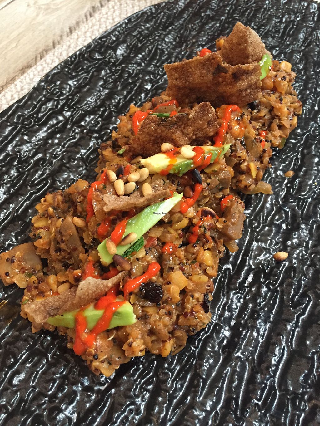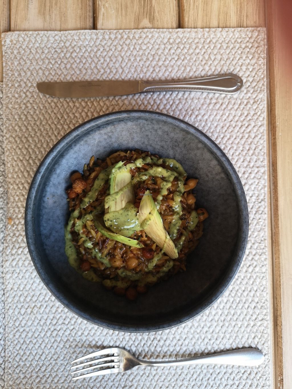 This main is so delicious, it is quinoa and chickpeas, avocado and veg…