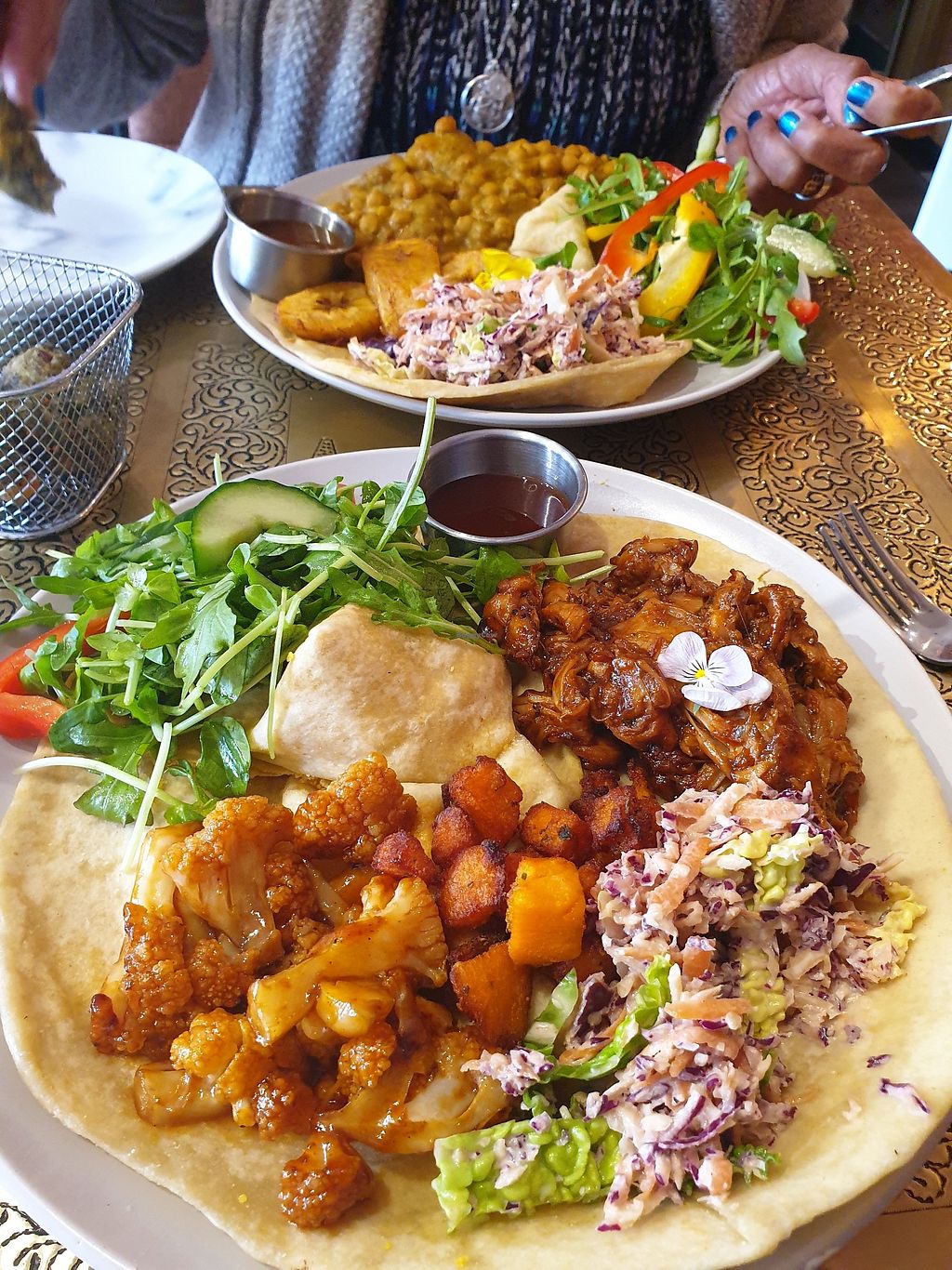 100% vegan Caribbean all-day brunch. Menu includes sweet potato and tofu scramble breakfast hash, spiced french toast, granola bowl, a range of open roti, chickpea bowl and more. Reported closed January 2023.