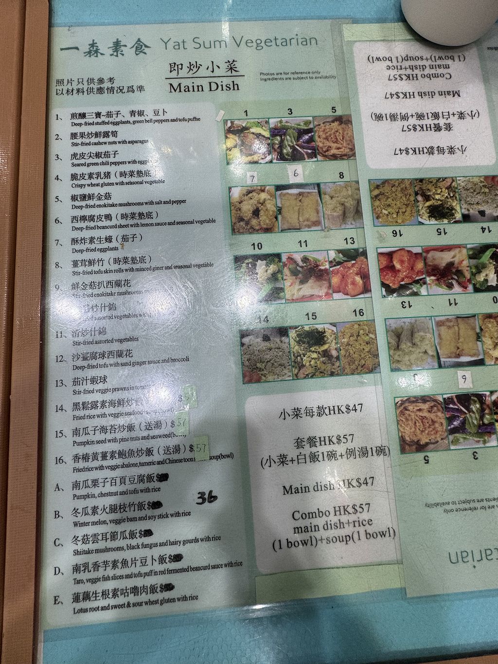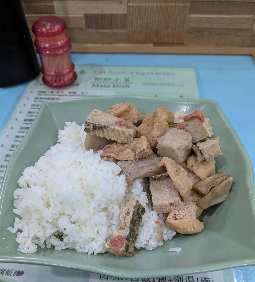 There seem to be two Yat Sum Vegetarians when I went to Hong Kong, one in Tsim Sha Tsui and one in Ya Ma Tei. This one is in Ya Ma Tei and by far it seems to have the cheapest meals in Hong Kong. That being said, this Ya Ma Tei branch is quite a small and cramped place. The food is decent and seems healthy but don't expect flavorful food. The place has a nice old-style atmosphere. One dish with a bowl of rice and soup costed 55 HKD.